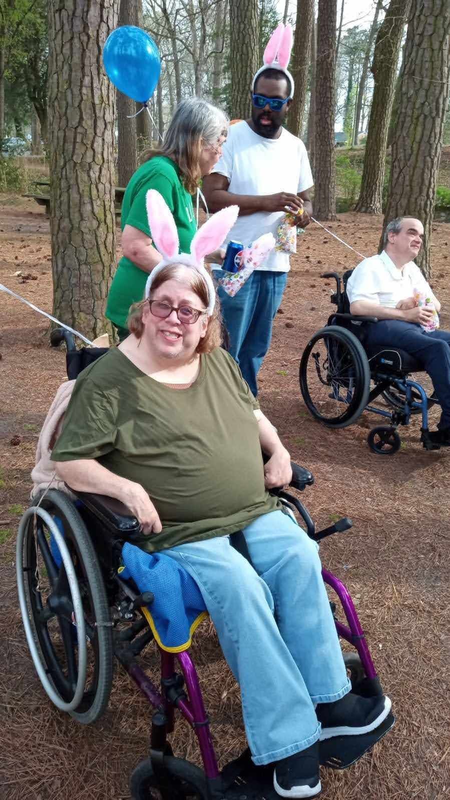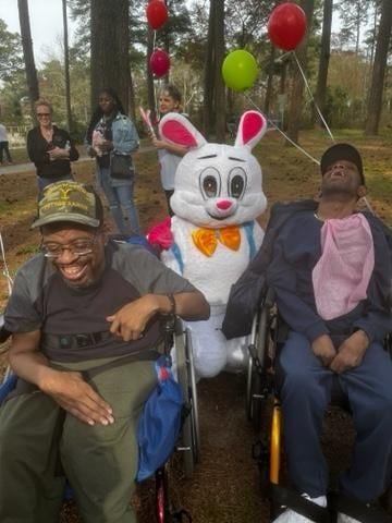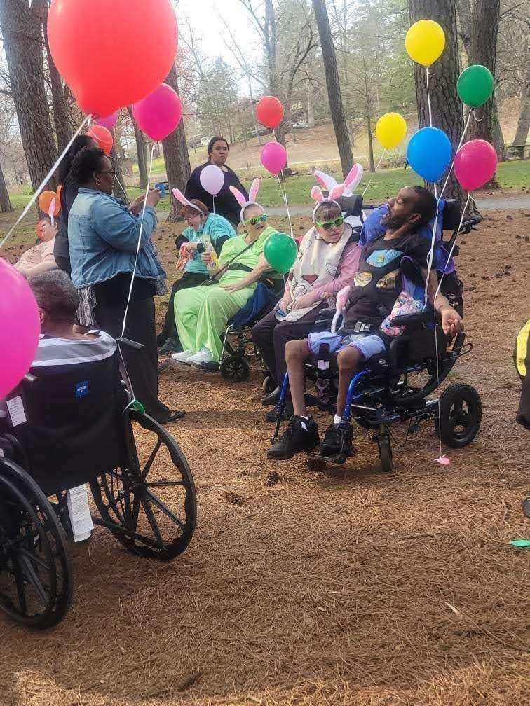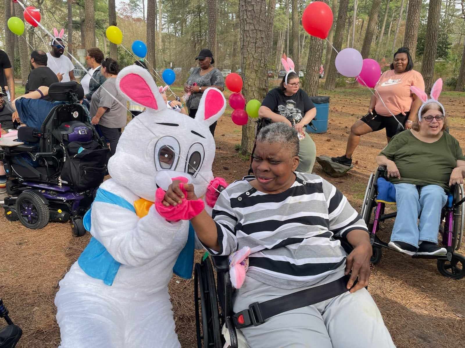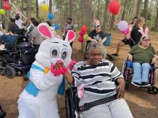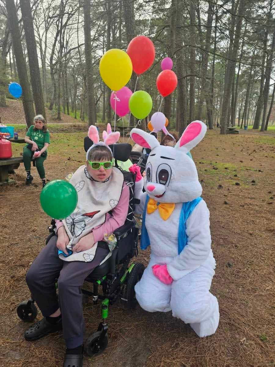 Despite the weather, spirits soared as brightly as colorful balloons adorned the landscape. Laughter echoed amidst the park as clients & staff embarked on a delightful quest, searching high and low for hidden treasures. With each discovery, hearts brimmed with warmth and excitement, painting a picture of pure happiness, which escalated even further with the arrival of the Easter Bunny! Join us in reliving these precious moments.
