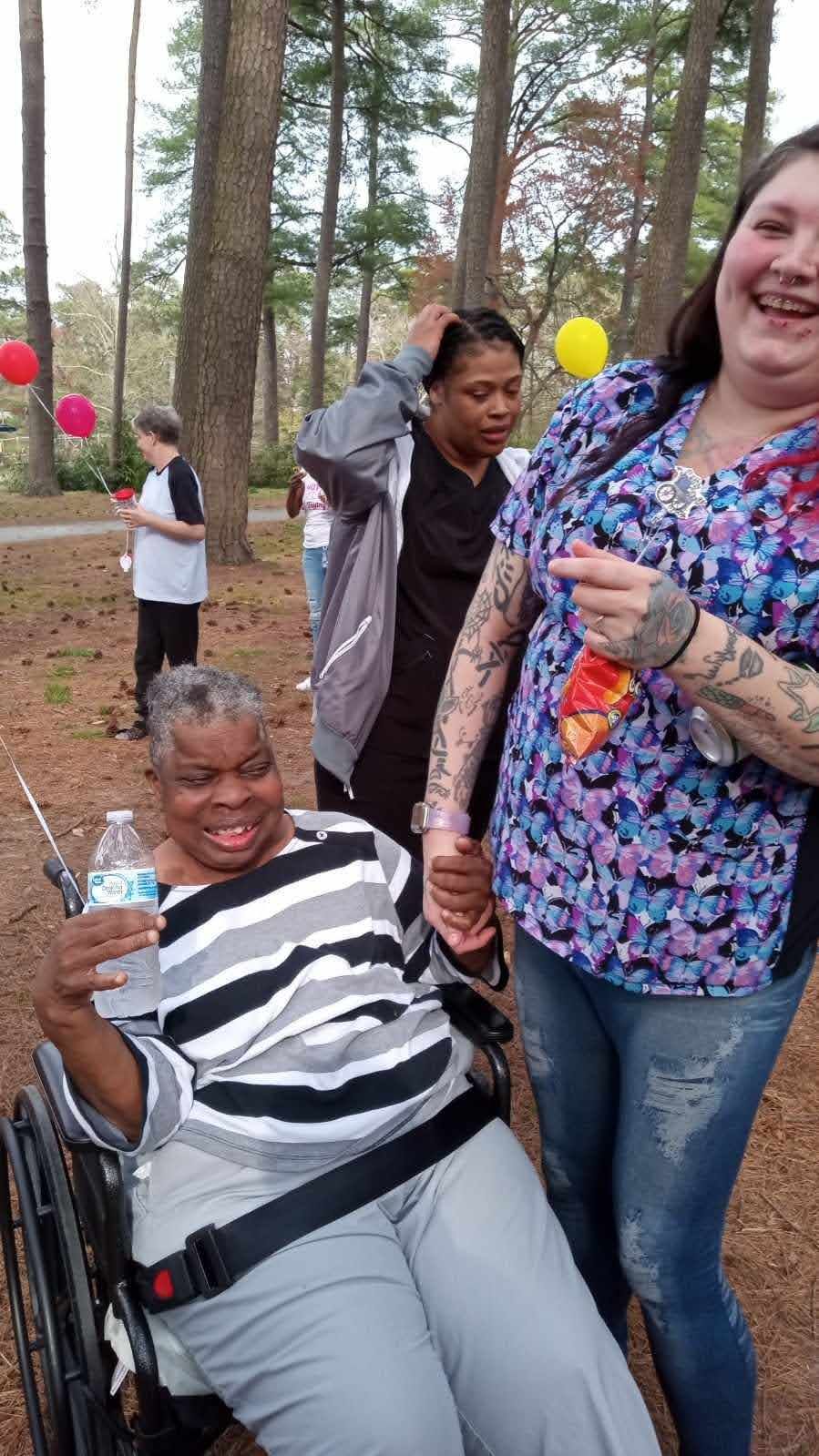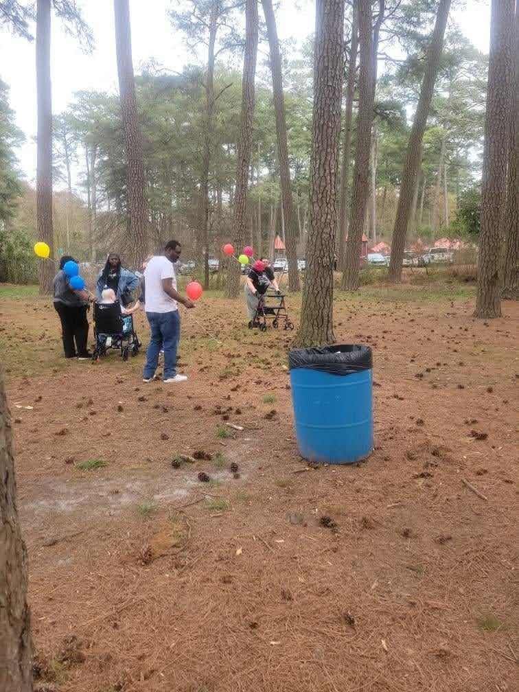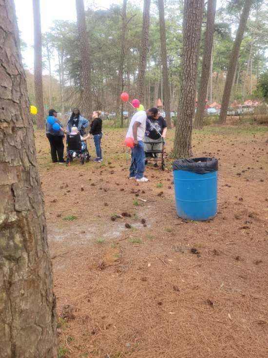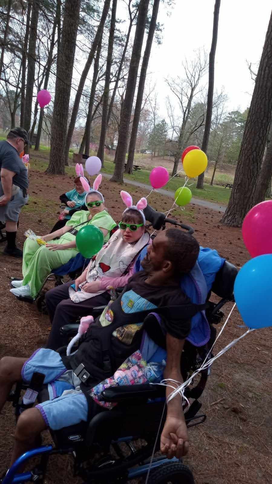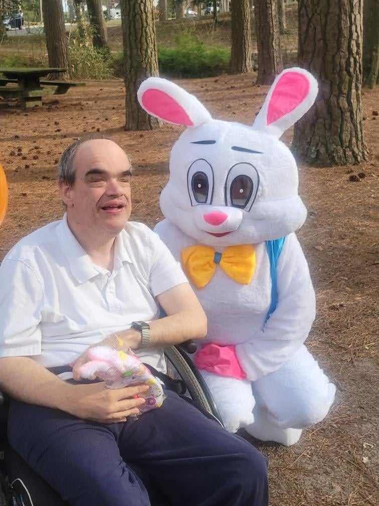 Despite the weather, spirits soared as brightly as colorful balloons adorned the landscape. Laughter echoed amidst the park as clients & staff embarked on a delightful quest, searching high and low for hidden treasures. With each discovery, hearts brimmed with warmth and excitement, painting a picture of pure happiness, which escalated even further with the arrival of the Easter Bunny! Join us in reliving these precious moments.