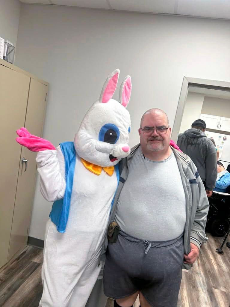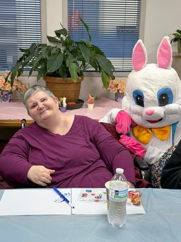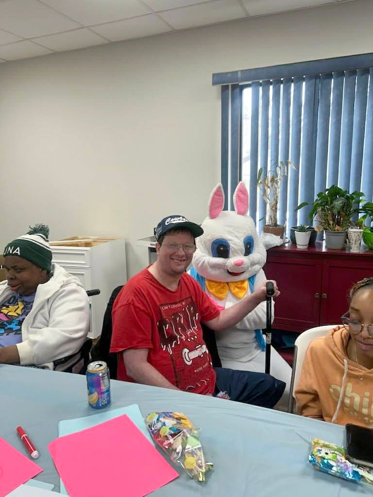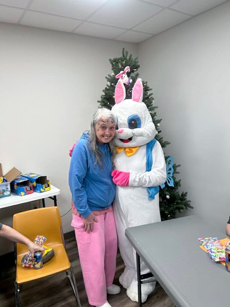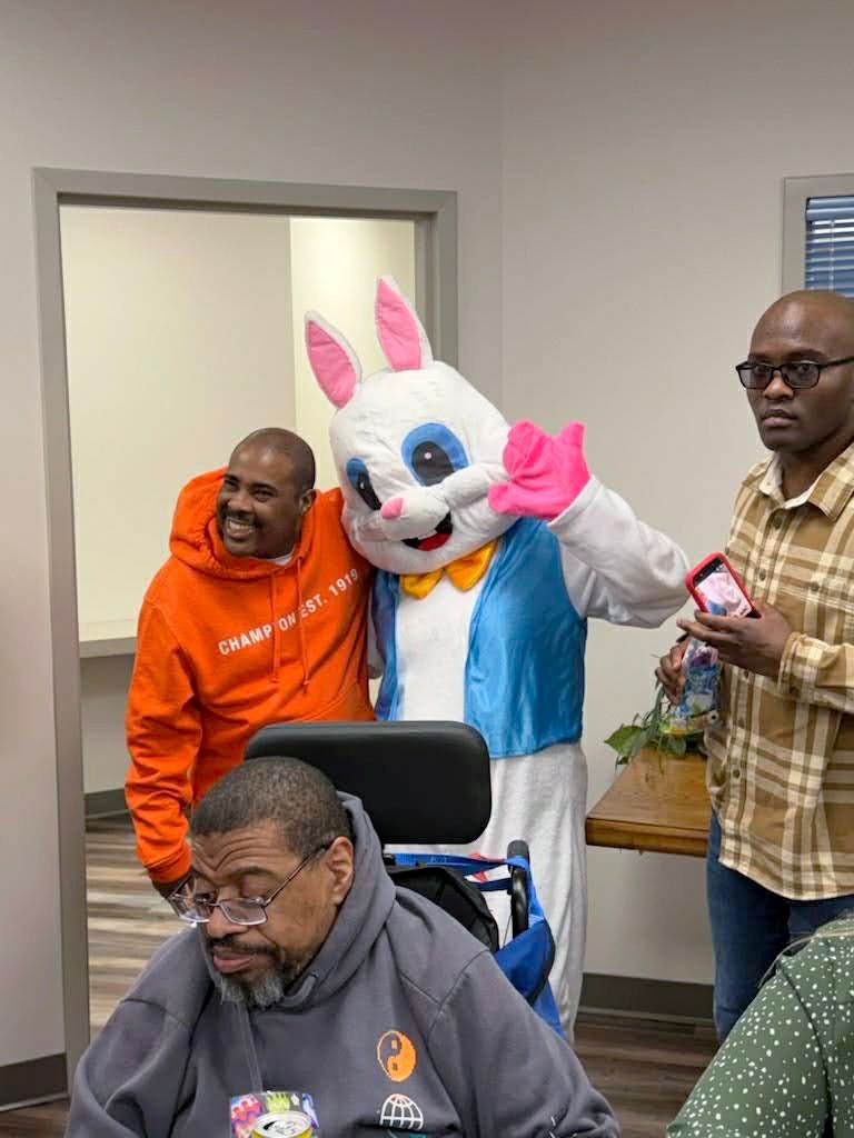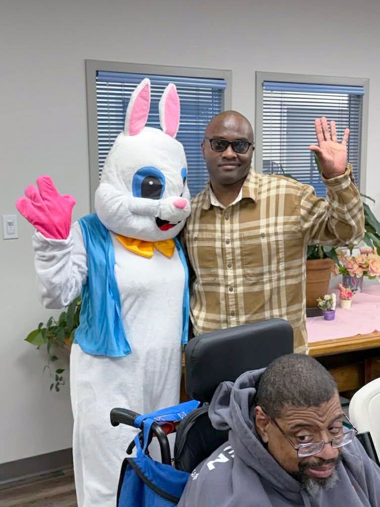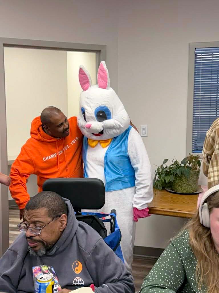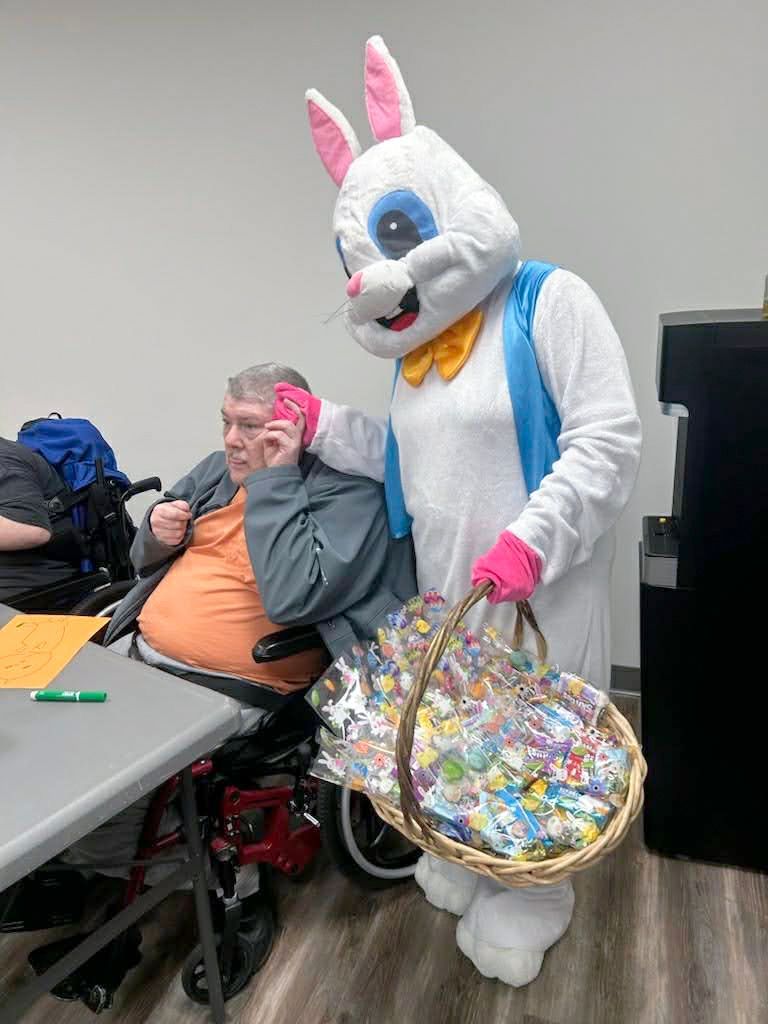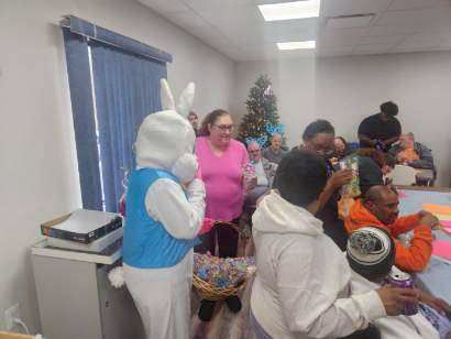 On April 2nd 2026, from 3-5 P.M., clients and staff had a blast creating unique portraits of the Easter Bunny at UNA's main office; when who should hop on by? Why, the Easter Bunny, of course!