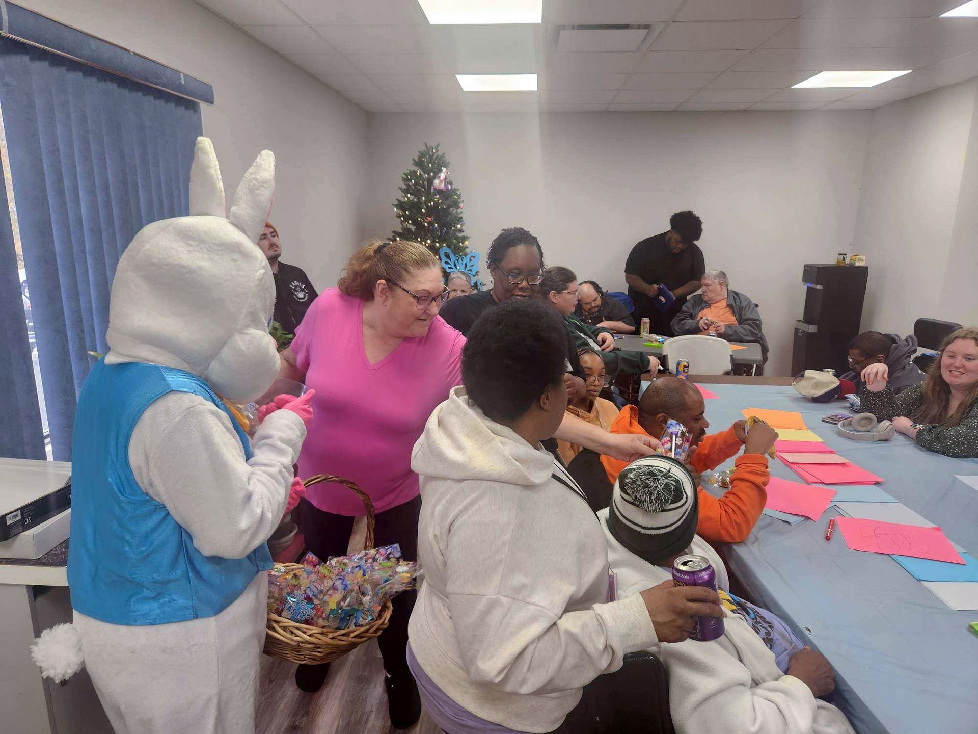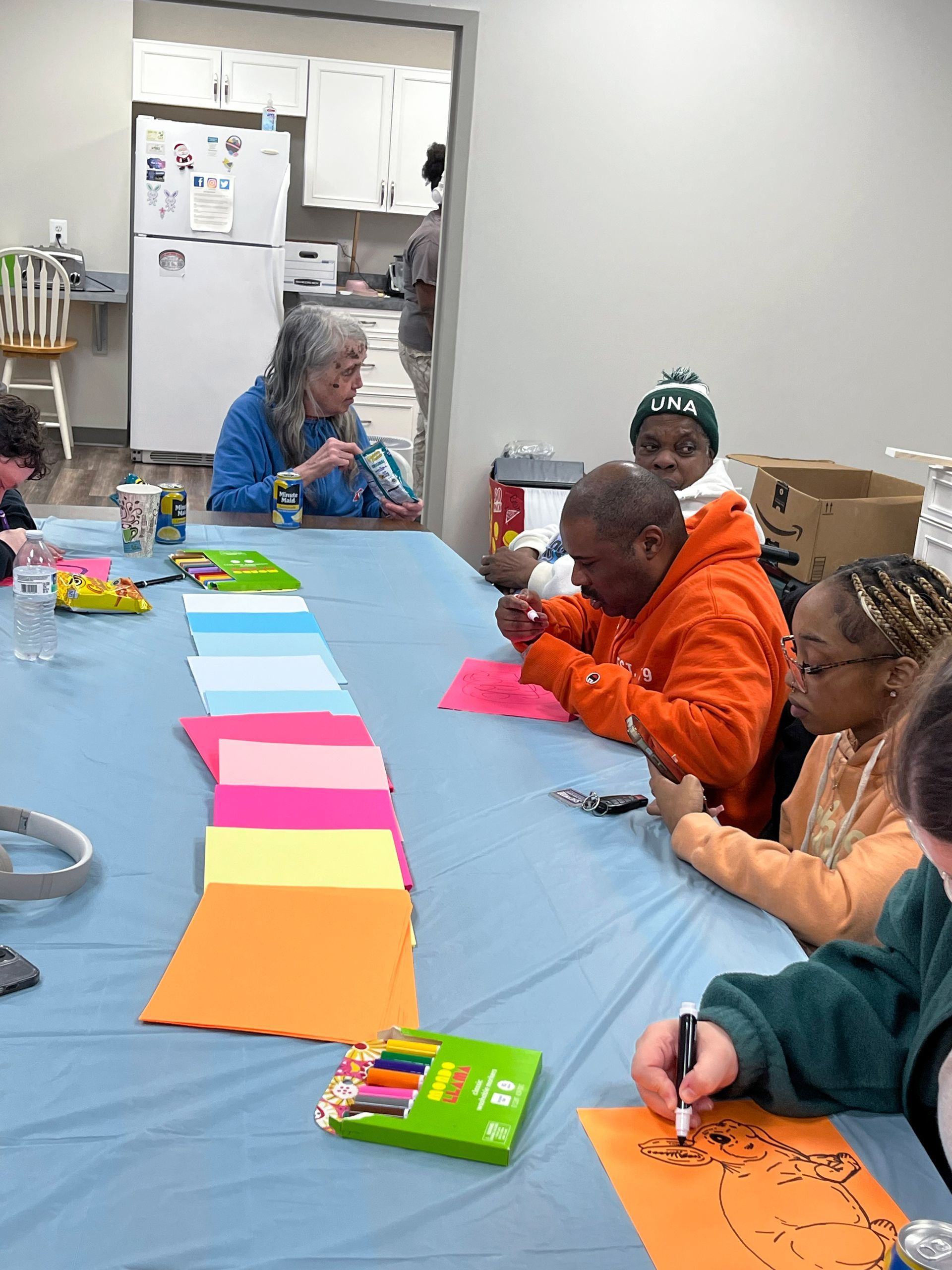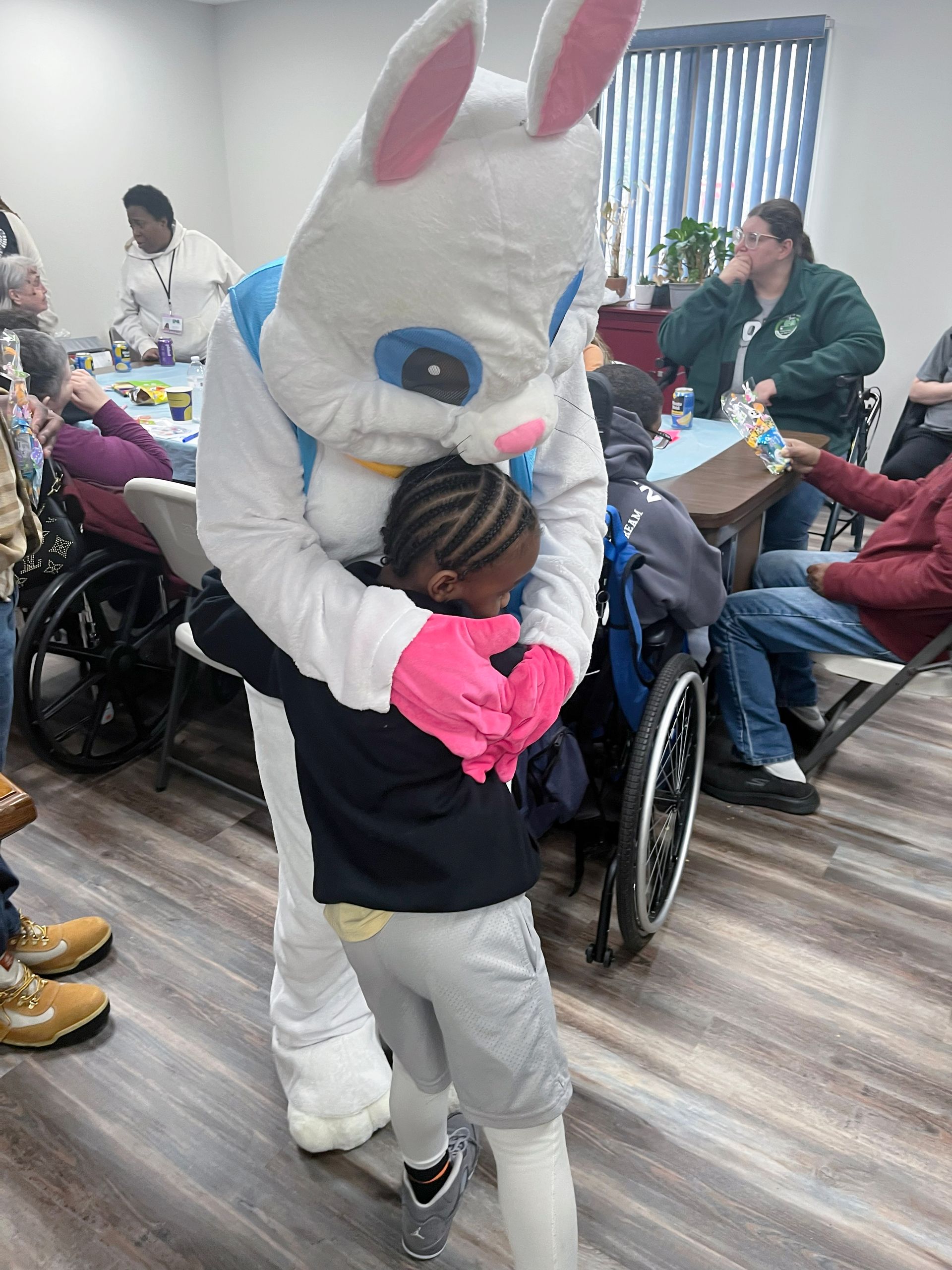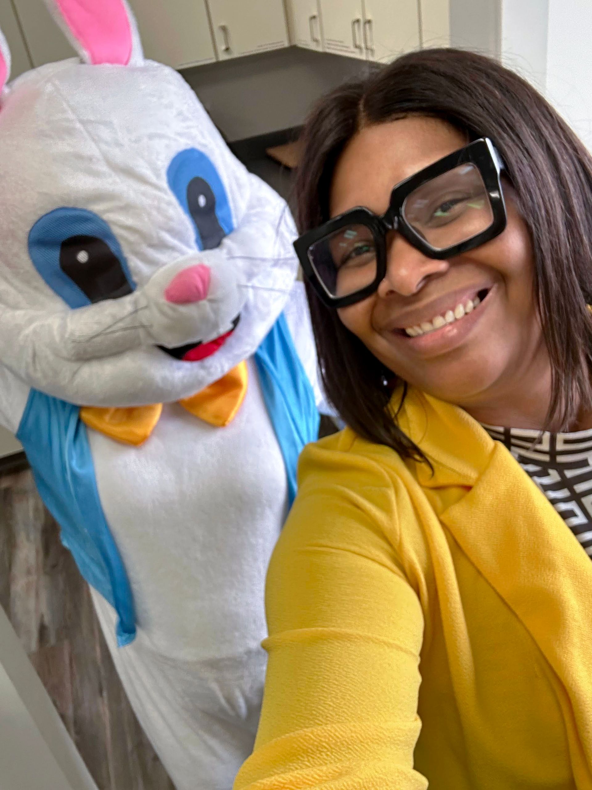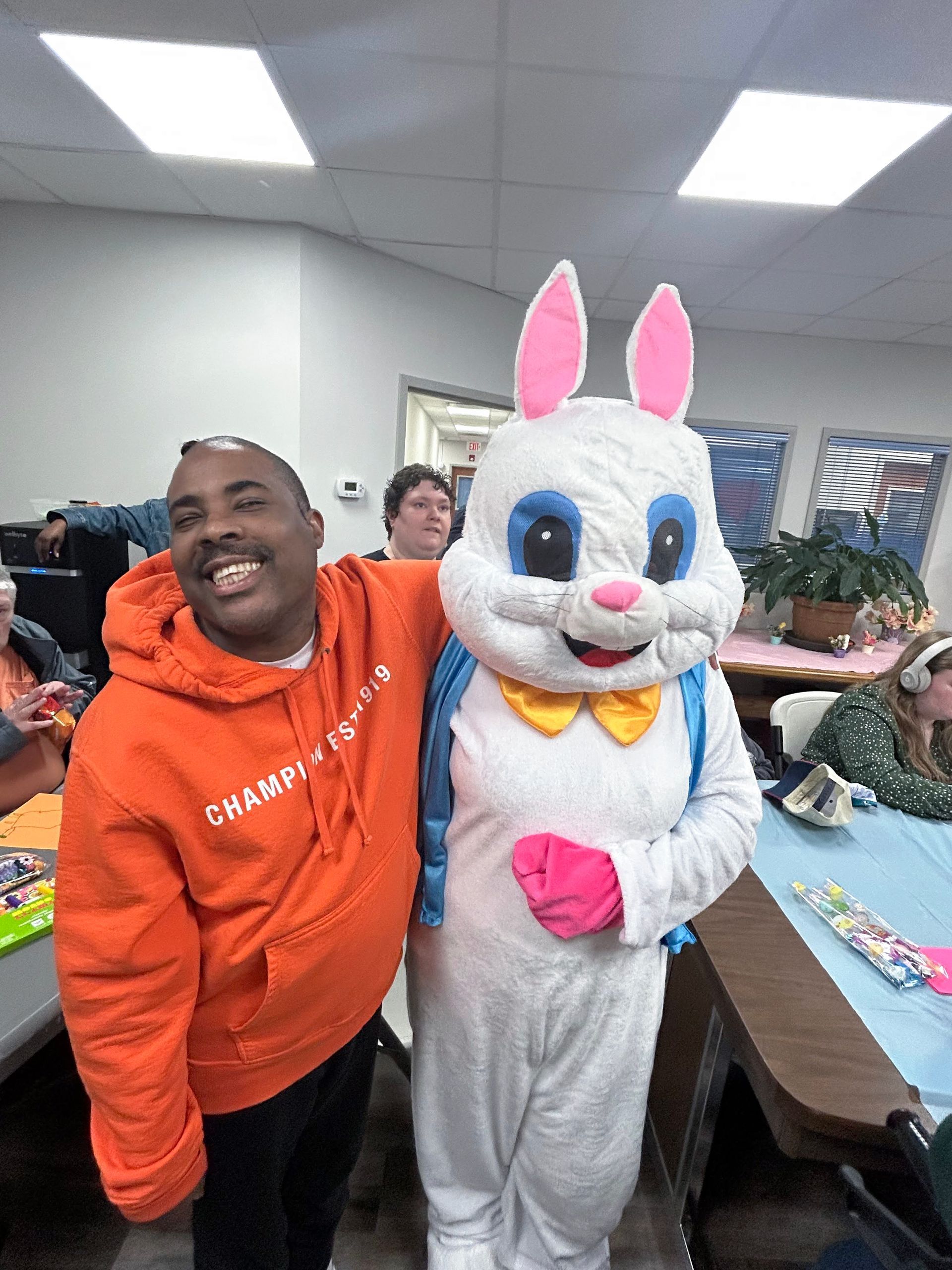 On April 2nd 2026, from 3-5 P.M., clients and staff had a blast creating unique portraits of the Easter Bunny at UNA's main office; when who should hop on by? Why, the Easter Bunny, of course!
