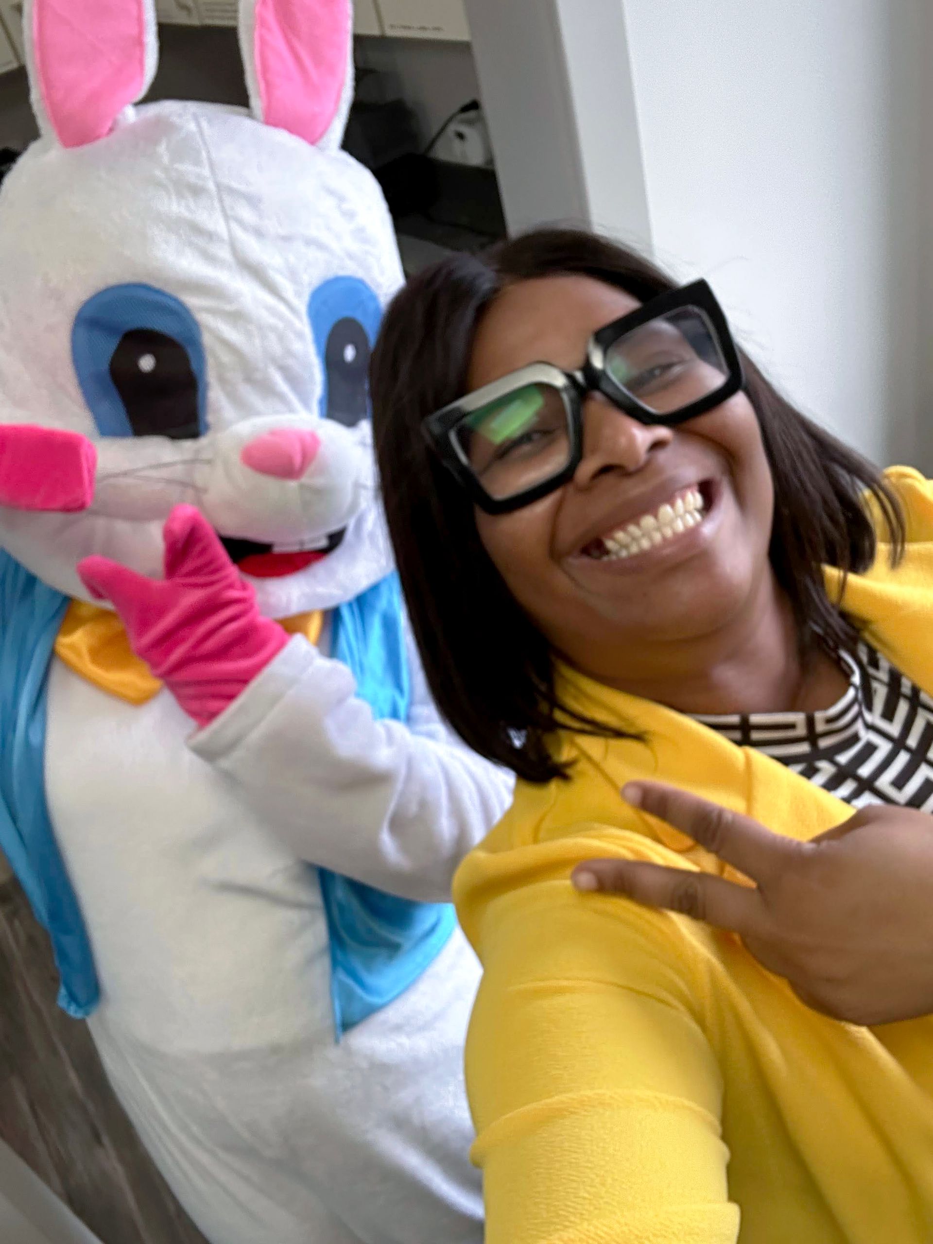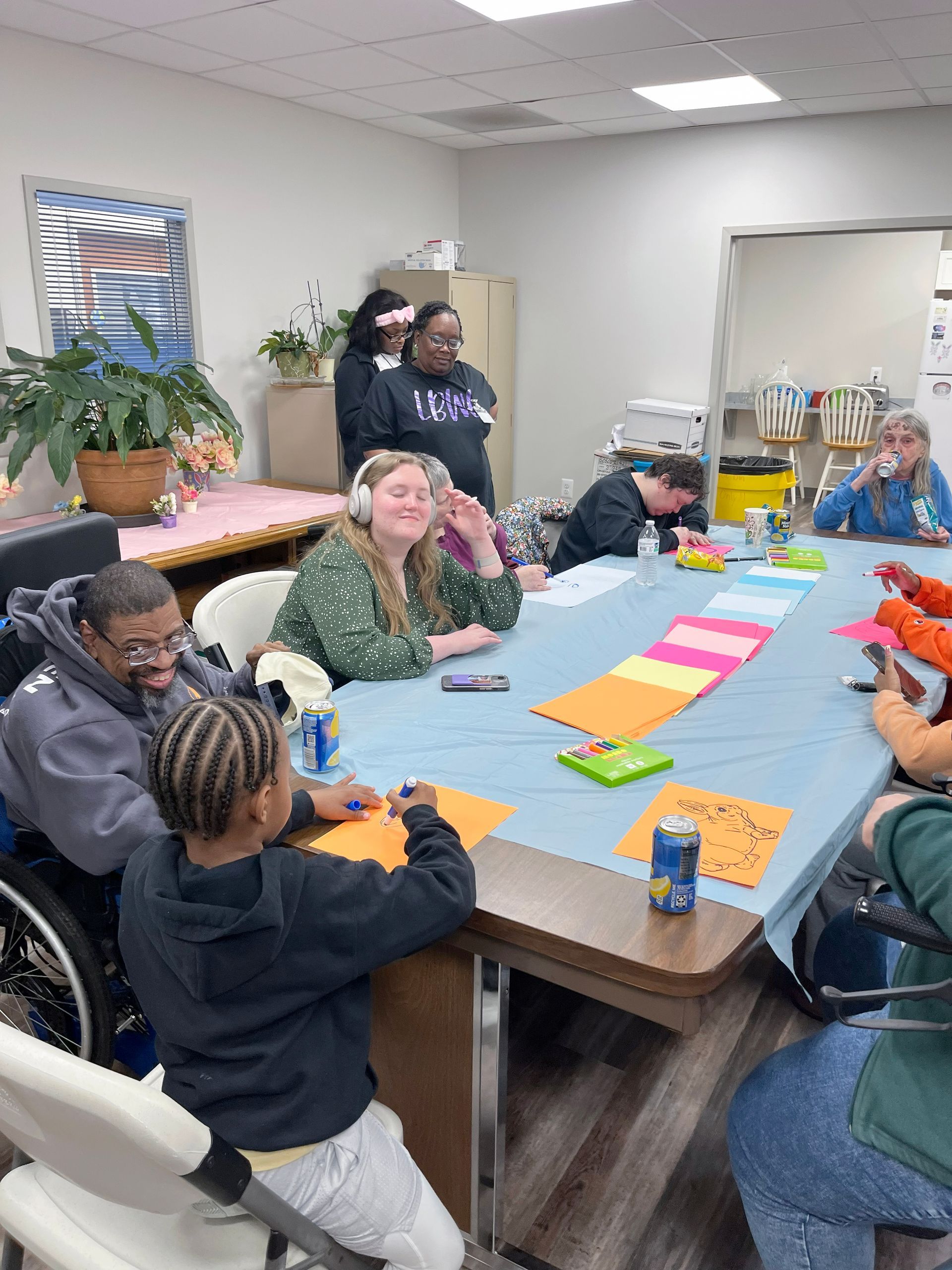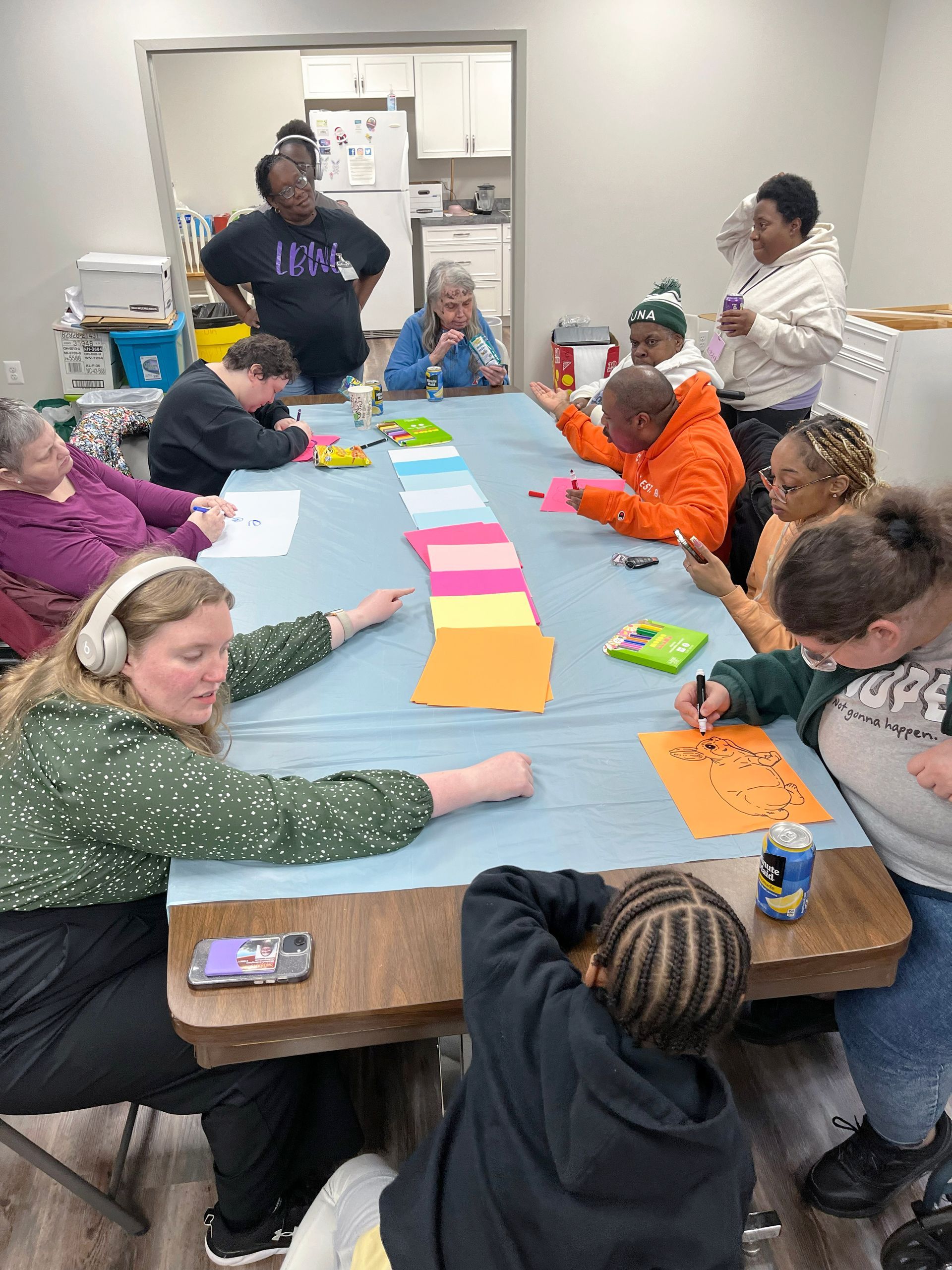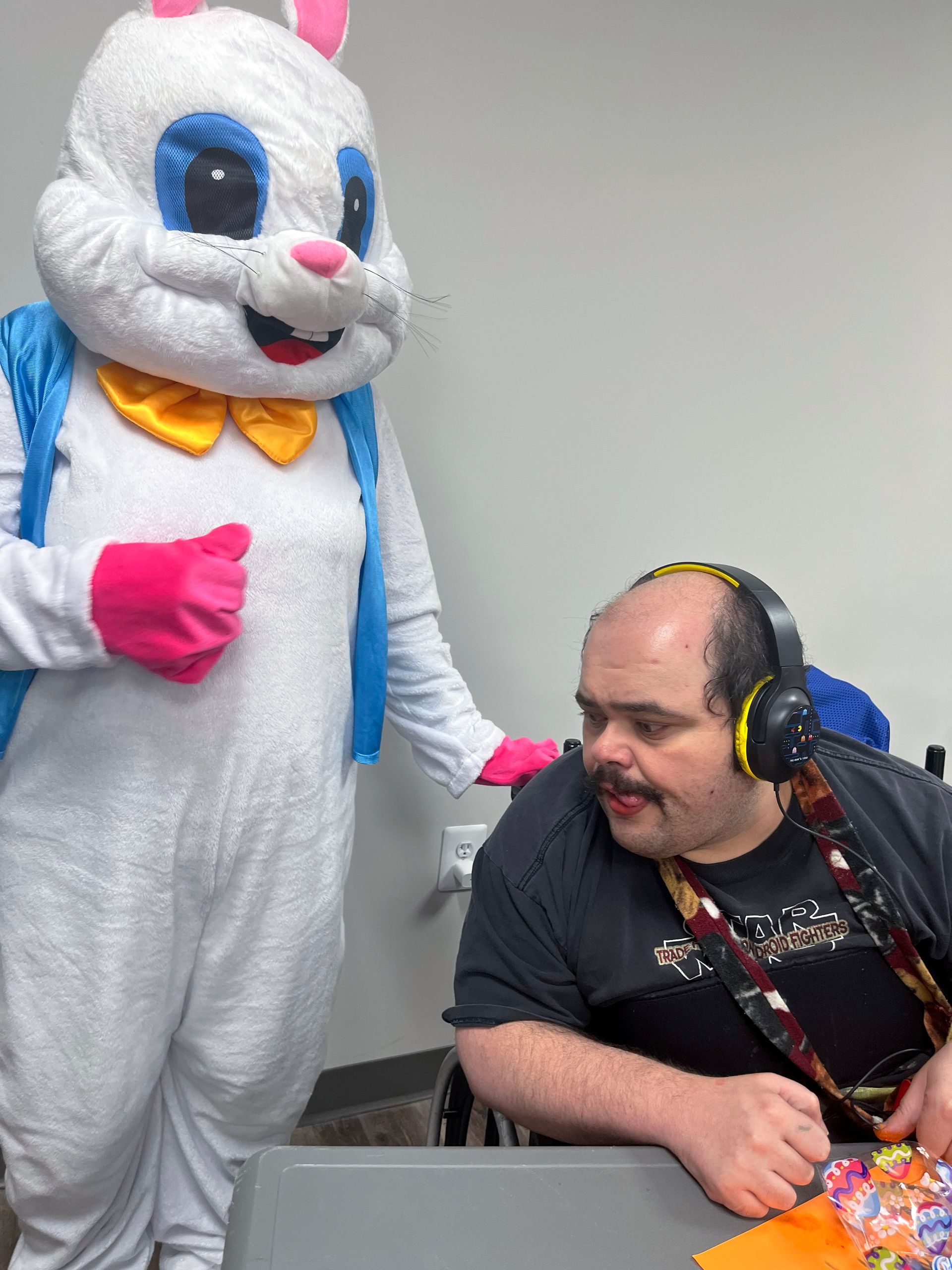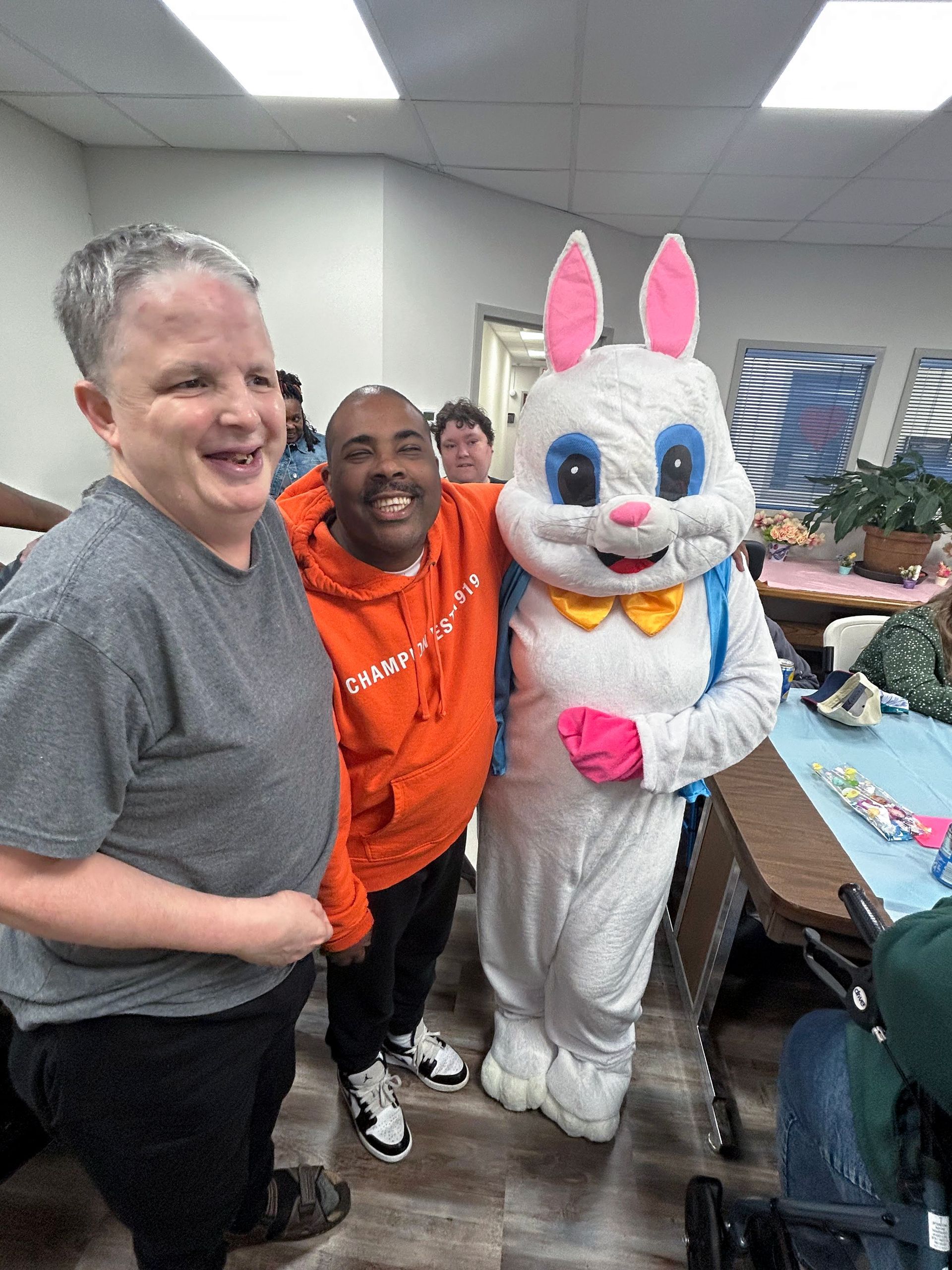 On April 2nd 2026, from 3-5 P.M., clients and staff had a blast creating unique portraits of the Easter Bunny at UNA's main office; when who should hop on by? Why, the Easter Bunny, of course!
