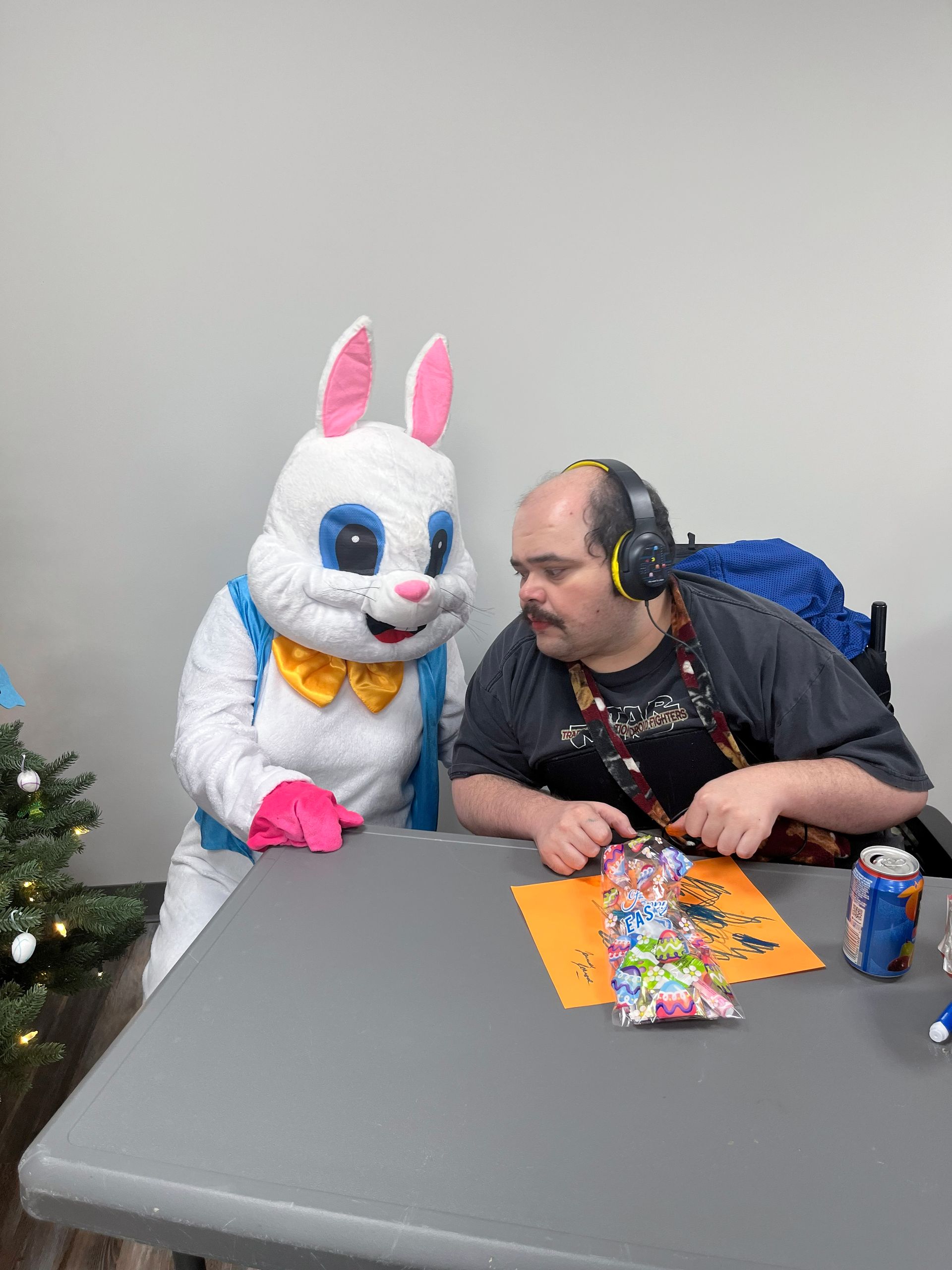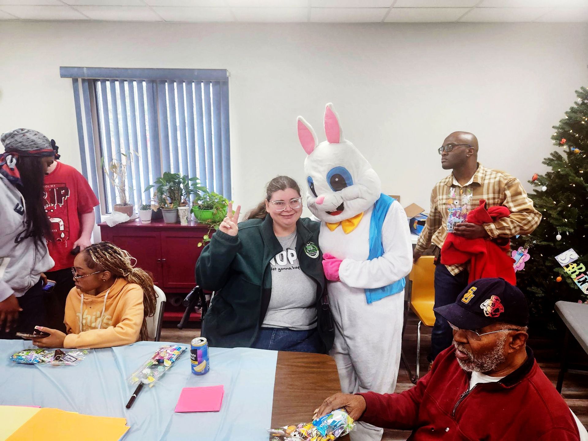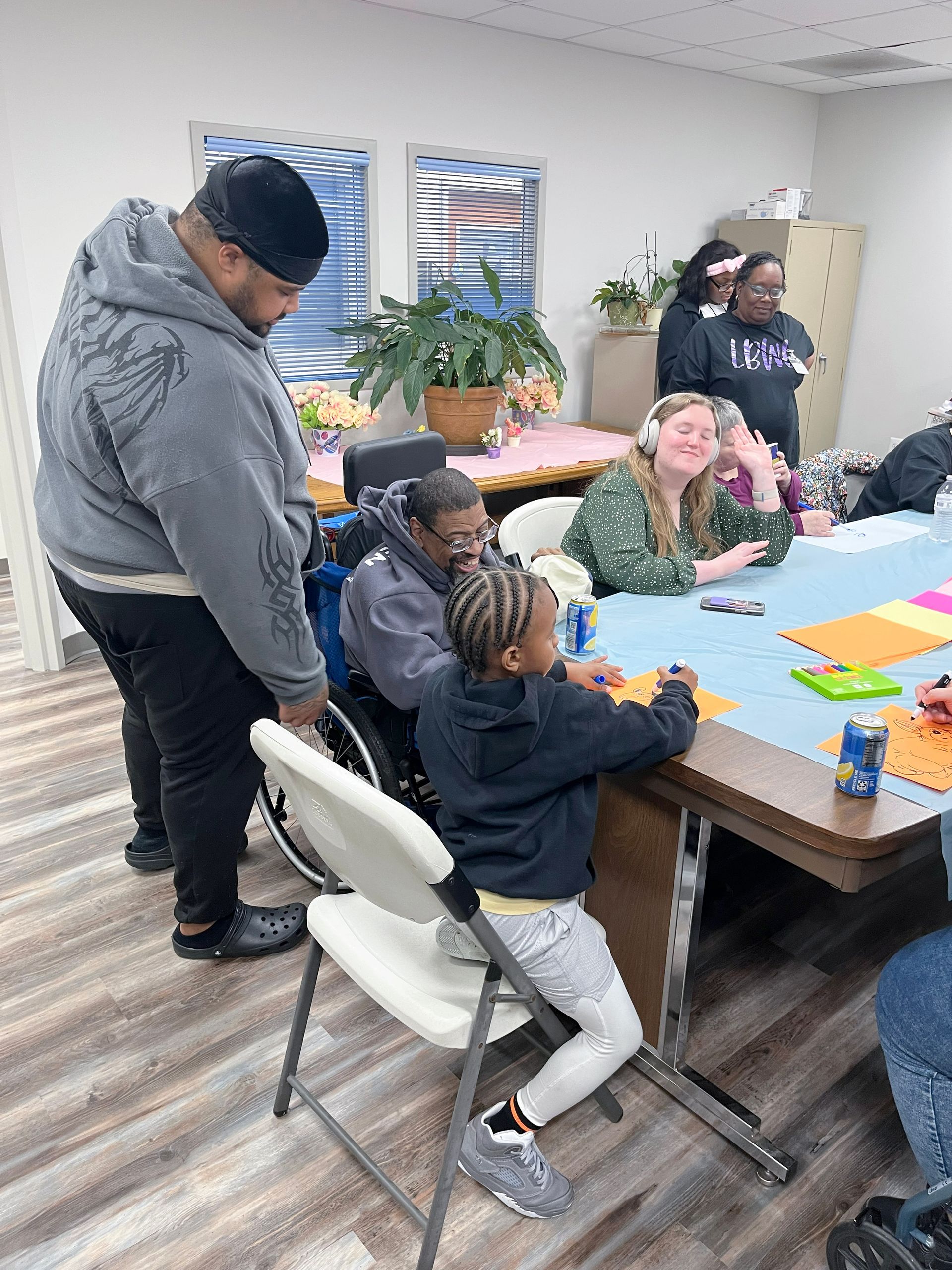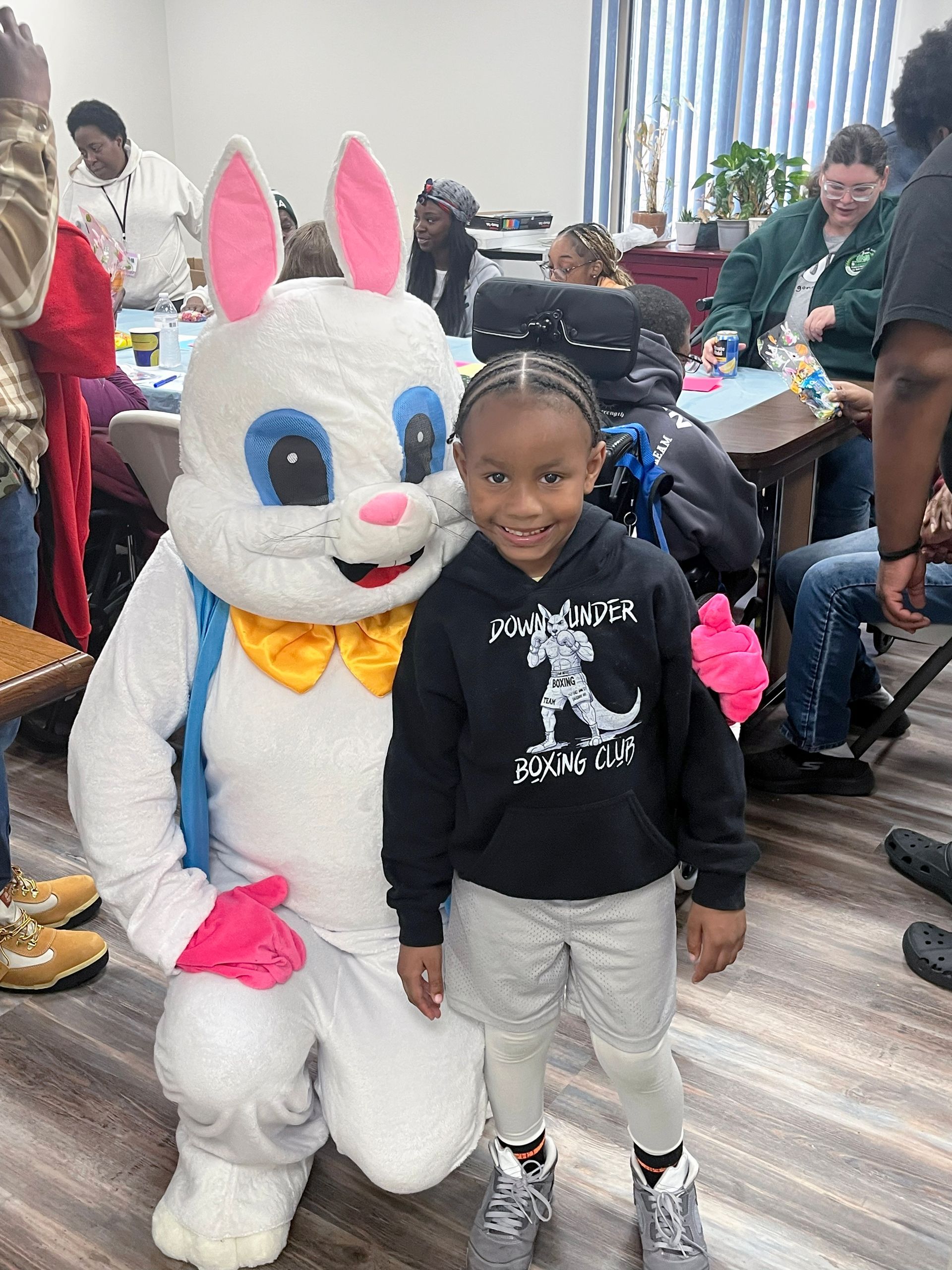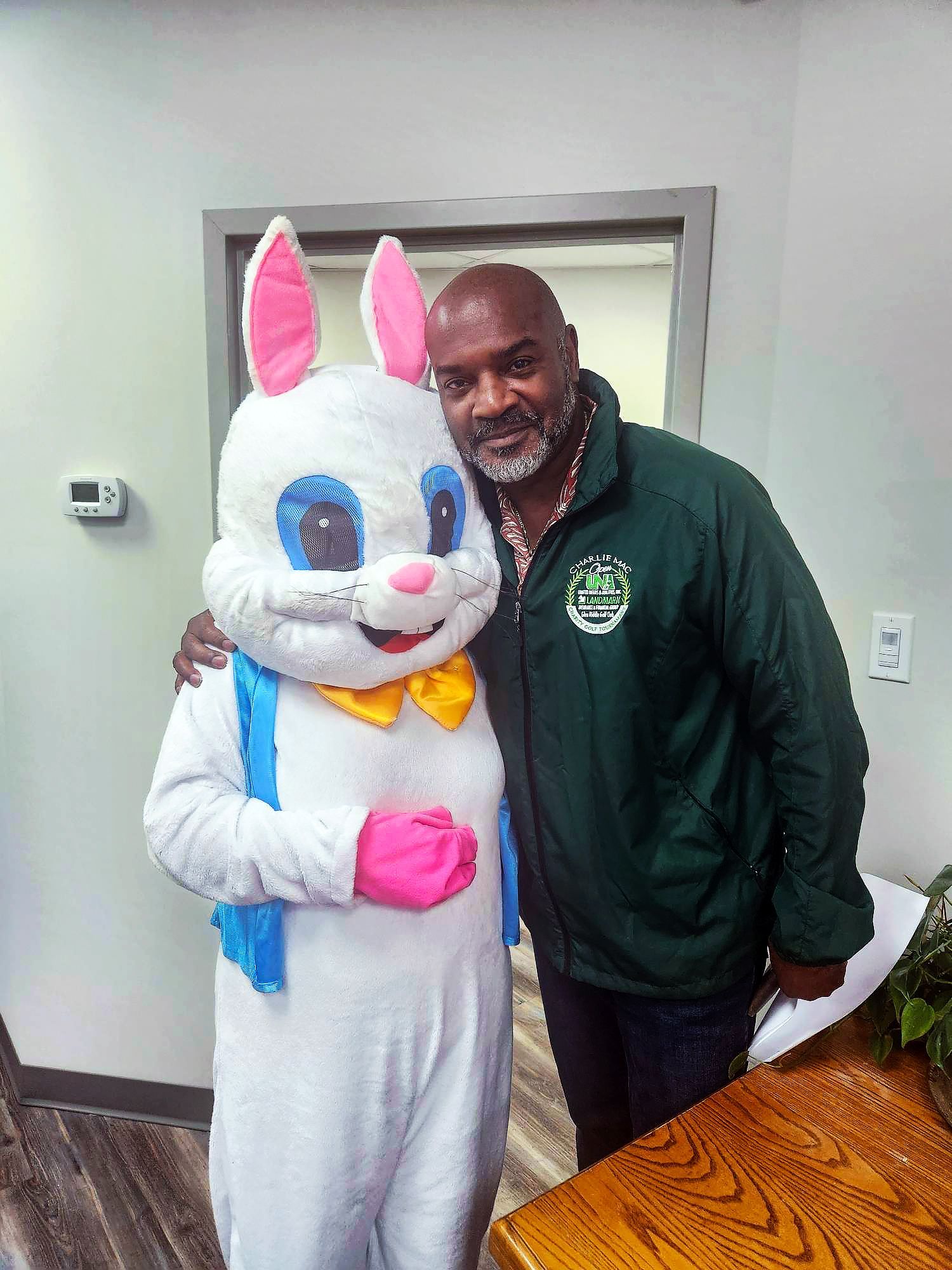 On April 2nd 2026, from 3-5 P.M., clients and staff had a blast creating unique portraits of the Easter Bunny at UNA's main office; when who should hop on by? Why, the Easter Bunny, of course!