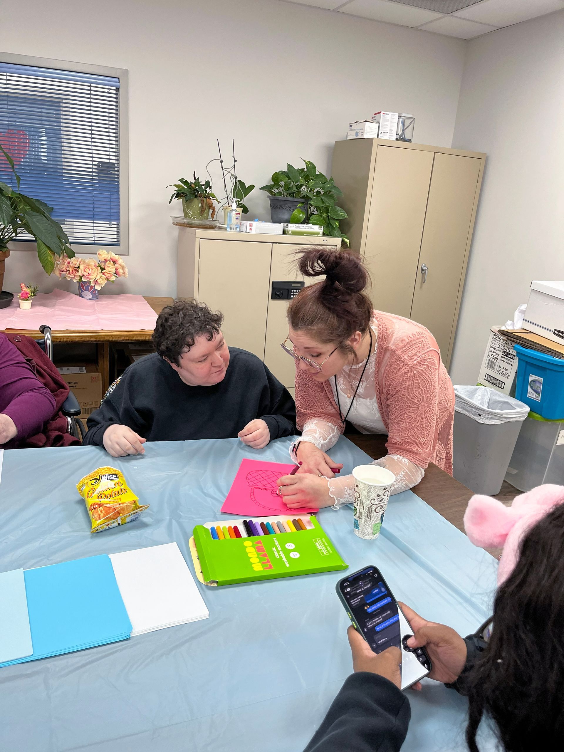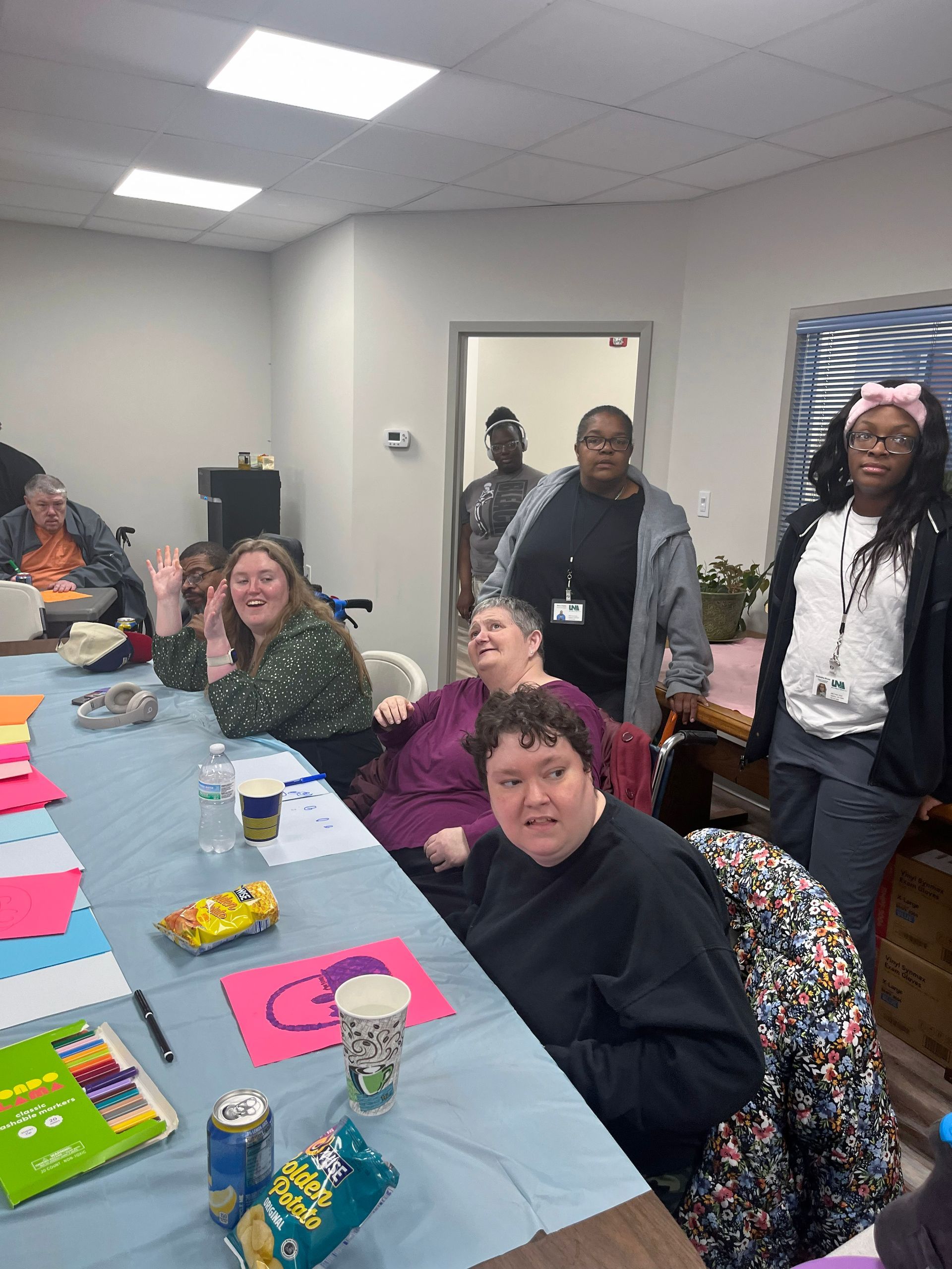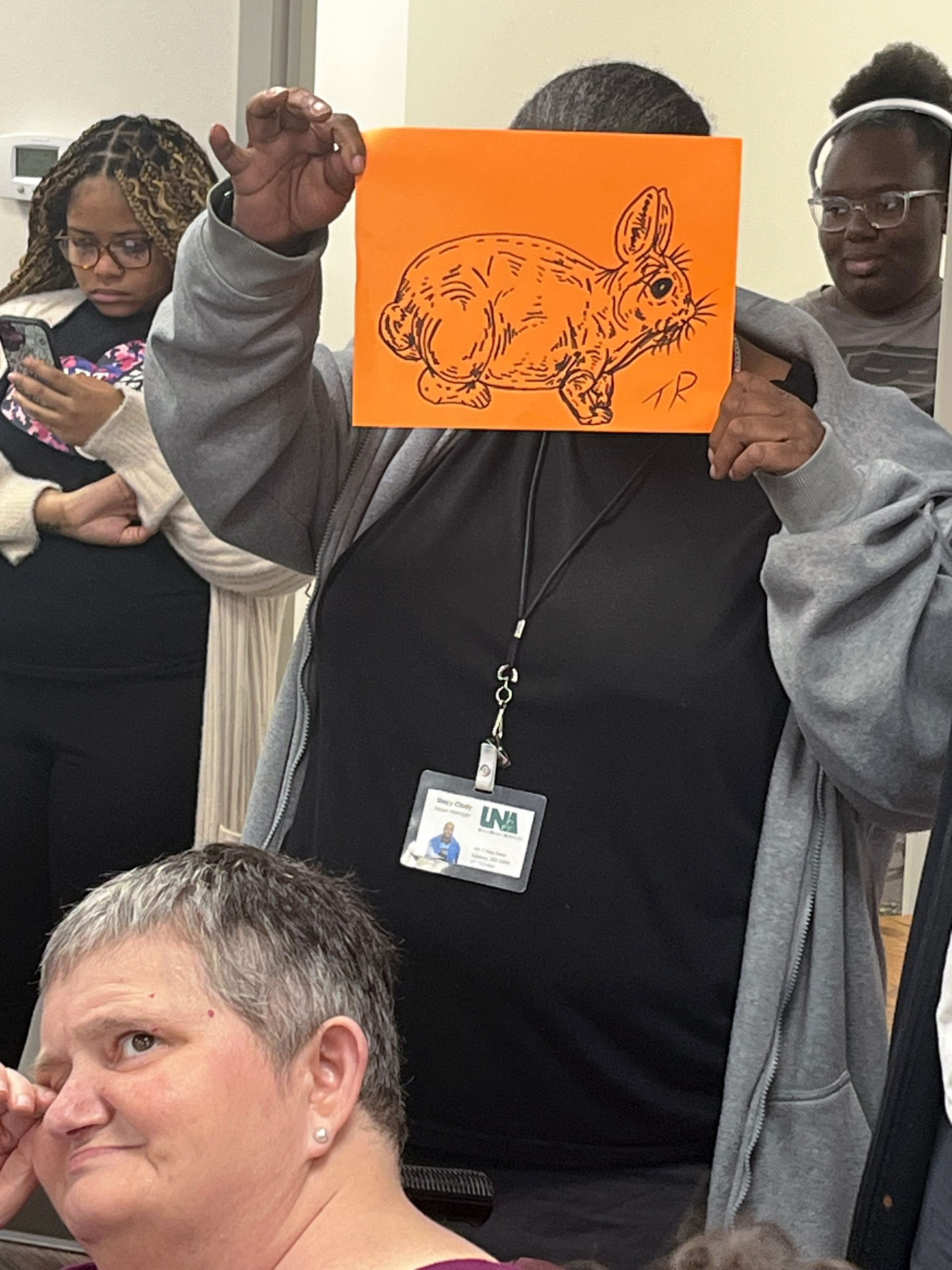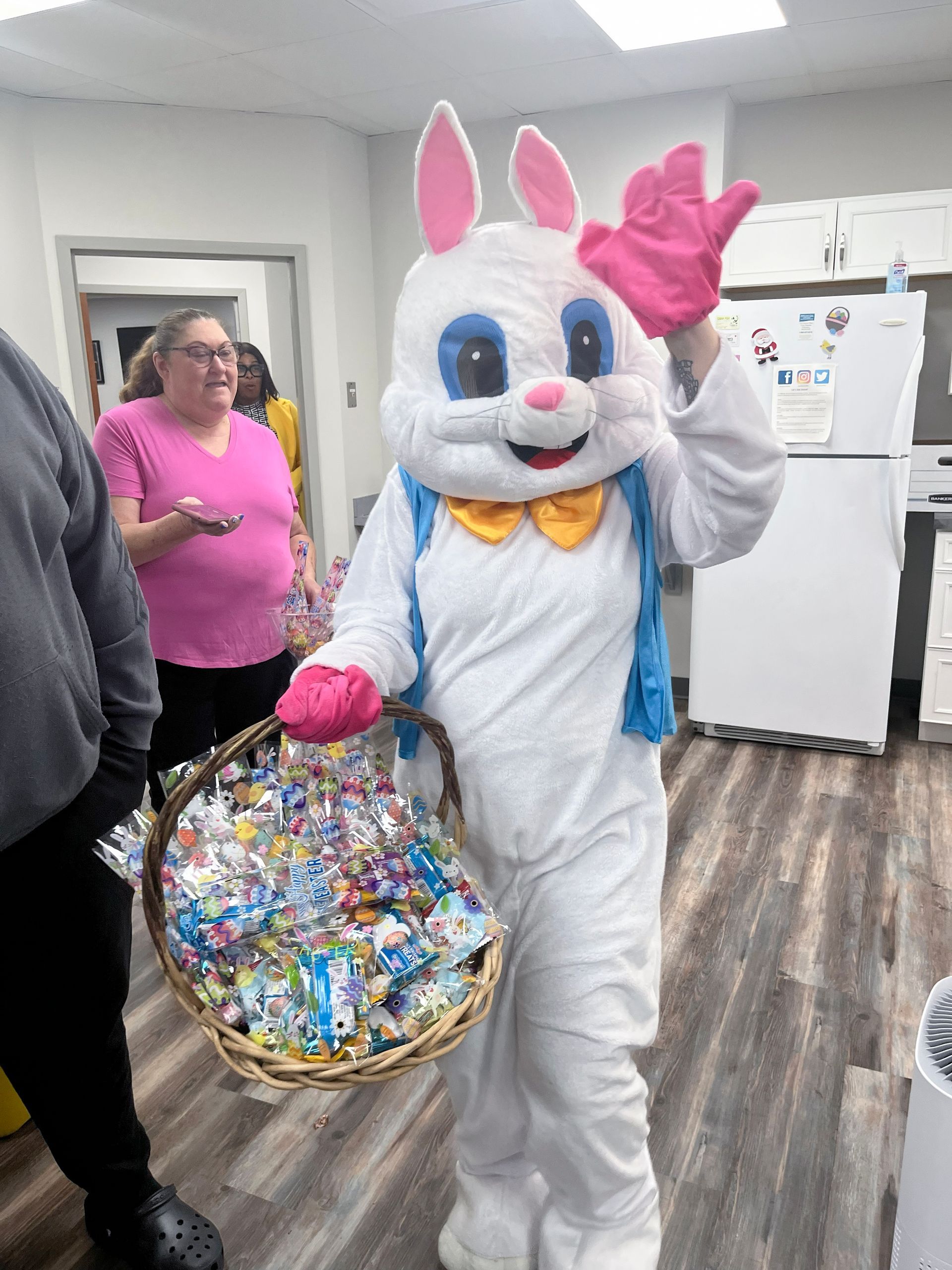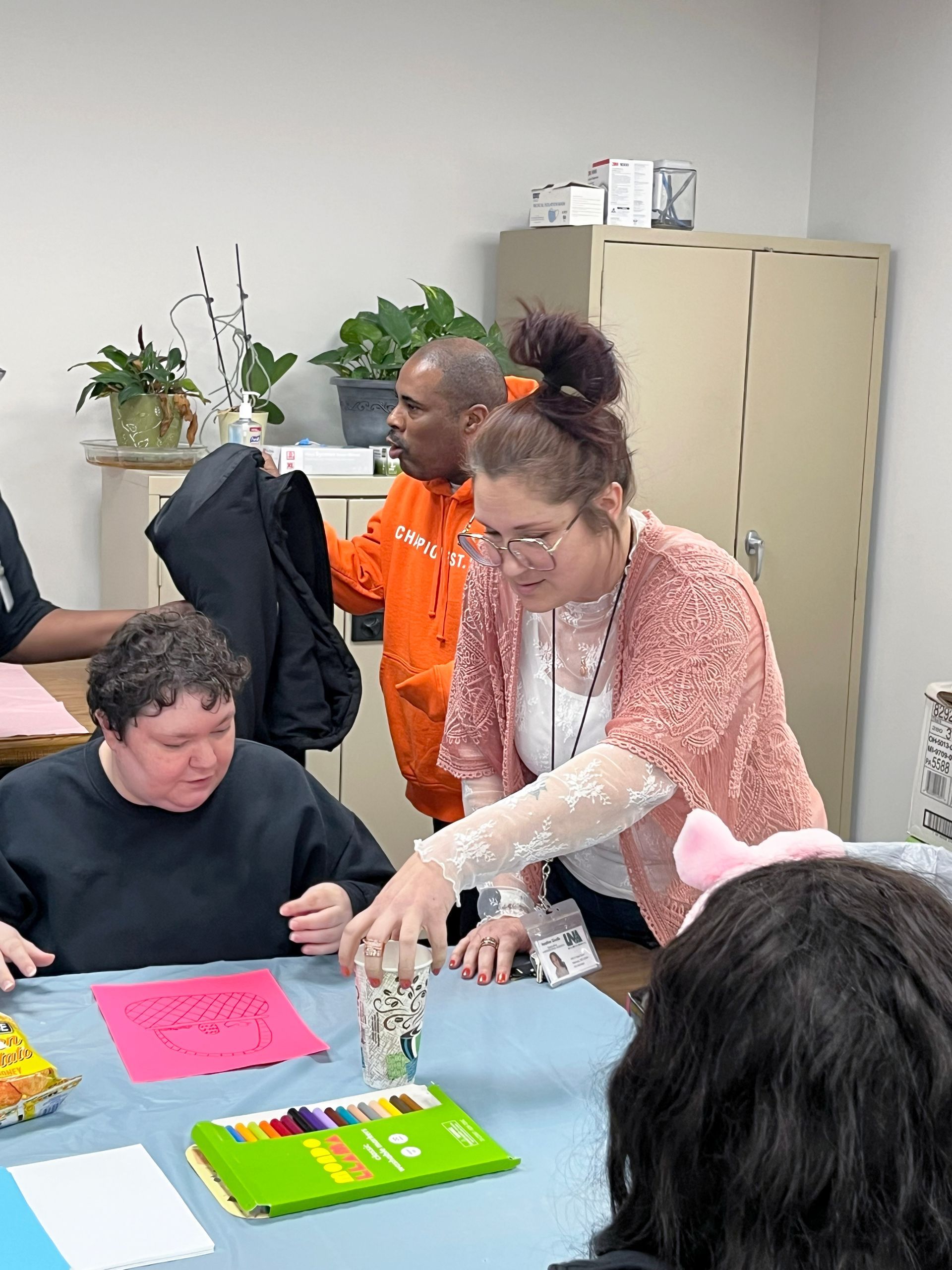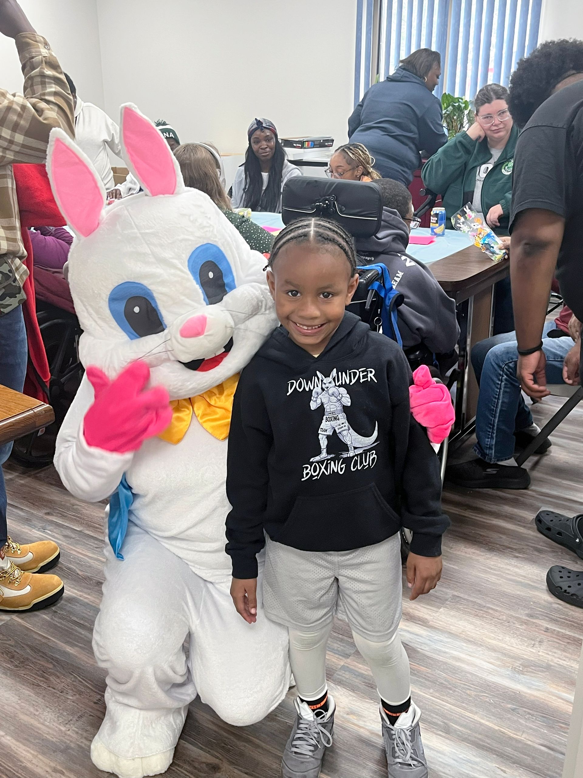On April 2nd 2026, from 3-5 P.M., clients and staff had a blast creating unique portraits of the Easter Bunny at UNA's main office; when who should hop on by? Why, the Easter Bunny, of course!