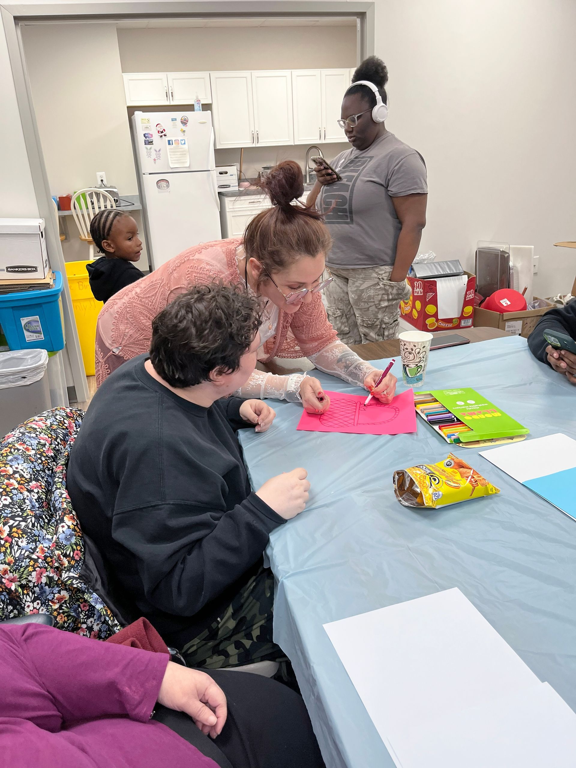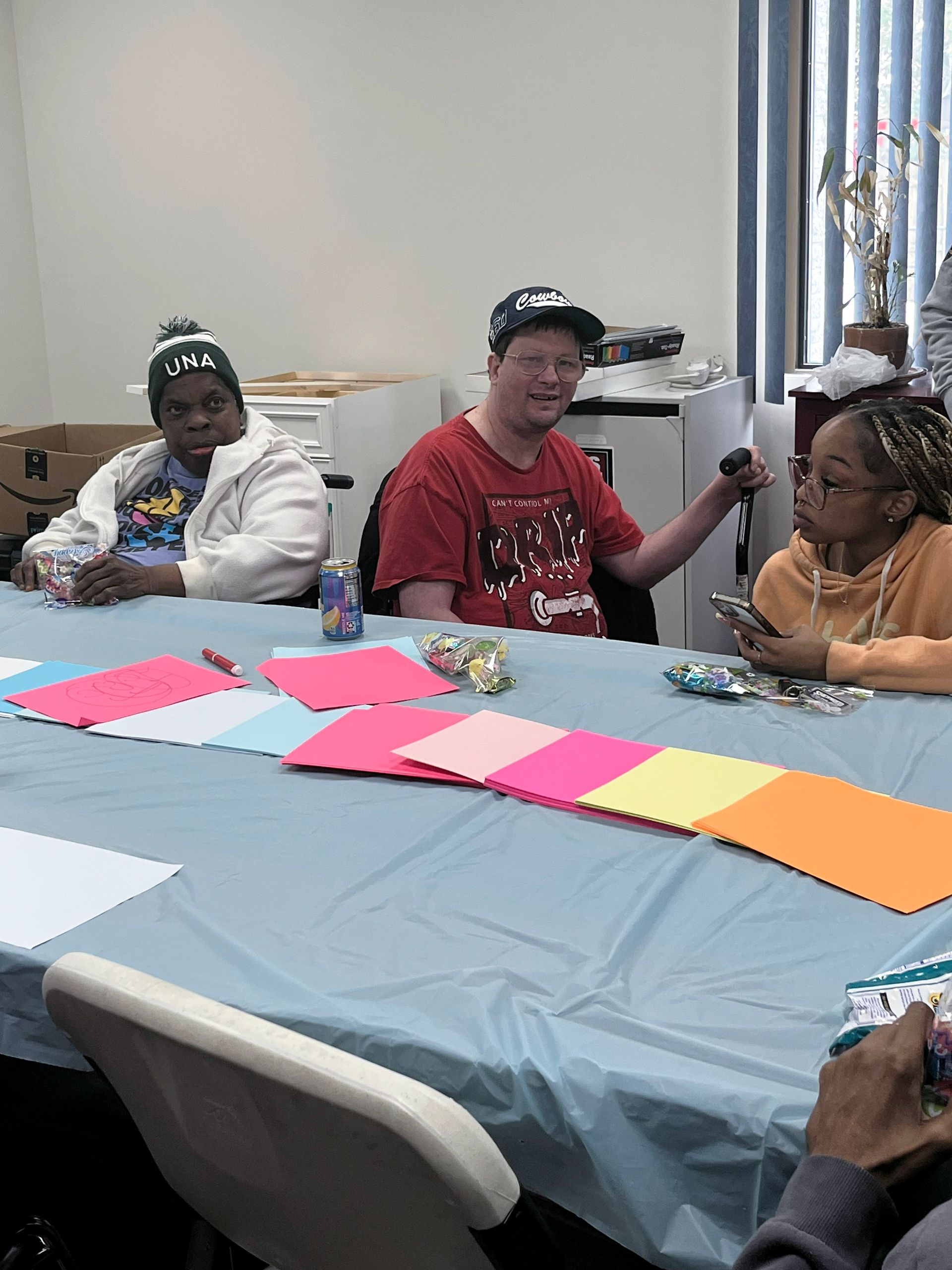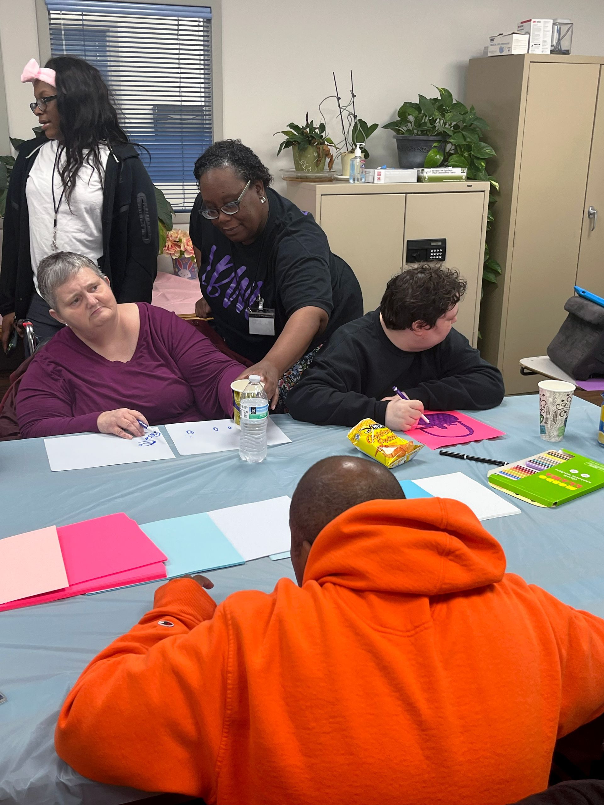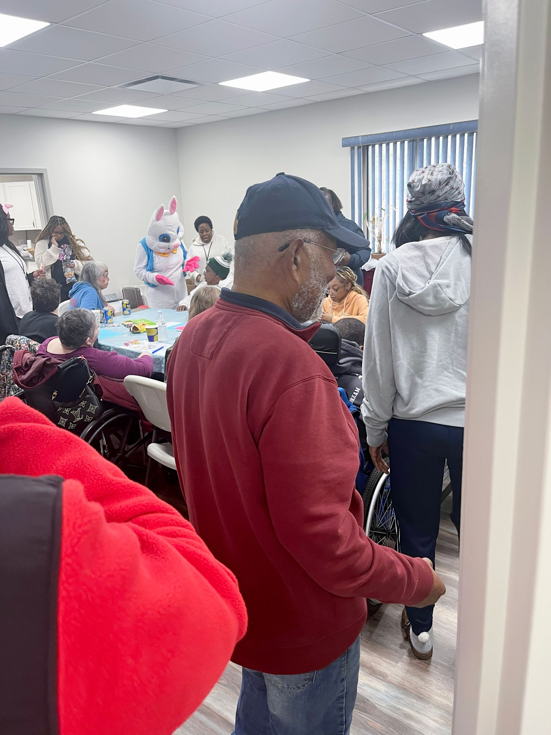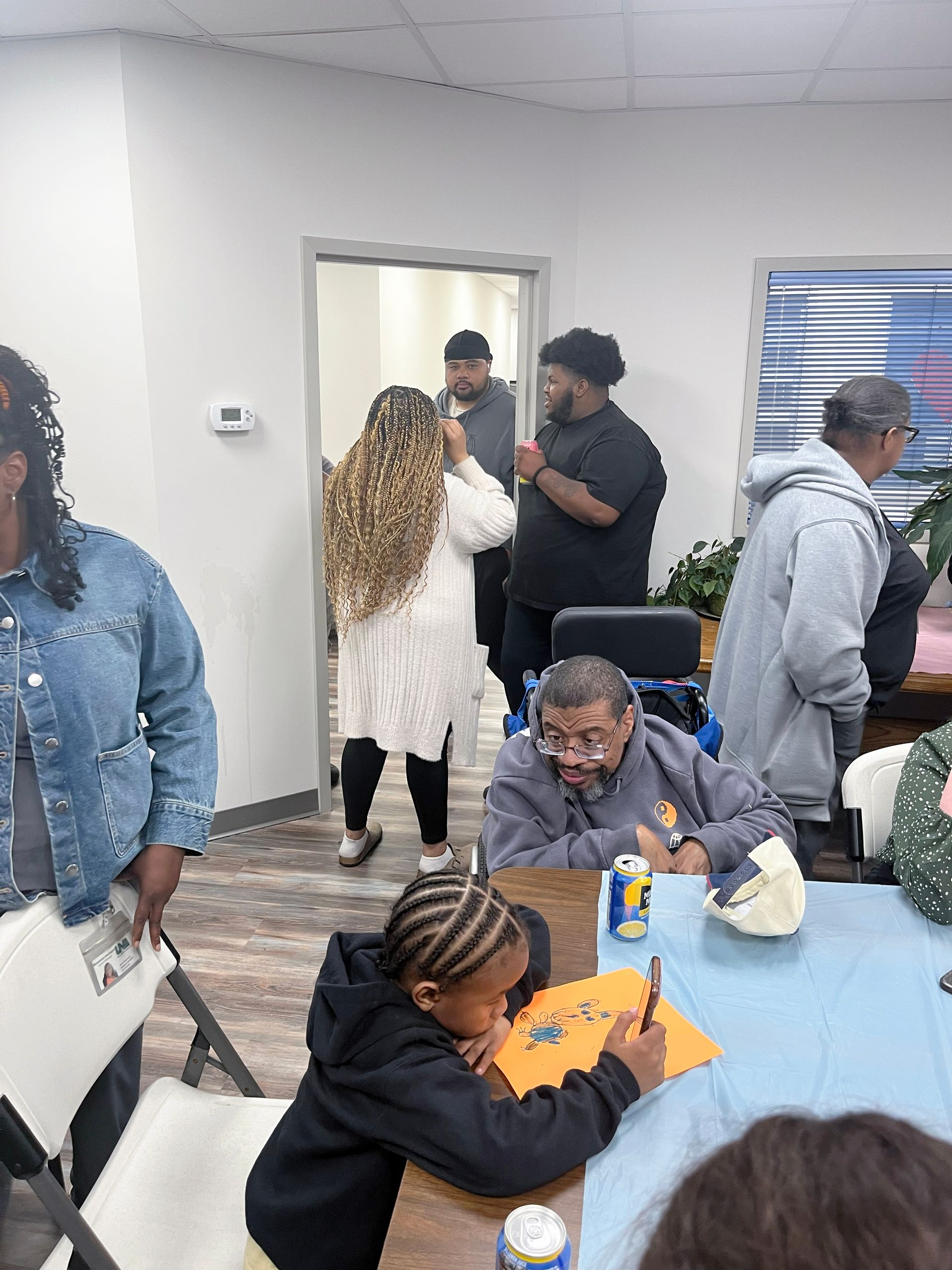 On April 2nd 2026, from 3-5 P.M., clients and staff had a blast creating unique portraits of the Easter Bunny at UNA's main office; when who should hop on by? Why, the Easter Bunny, of course!