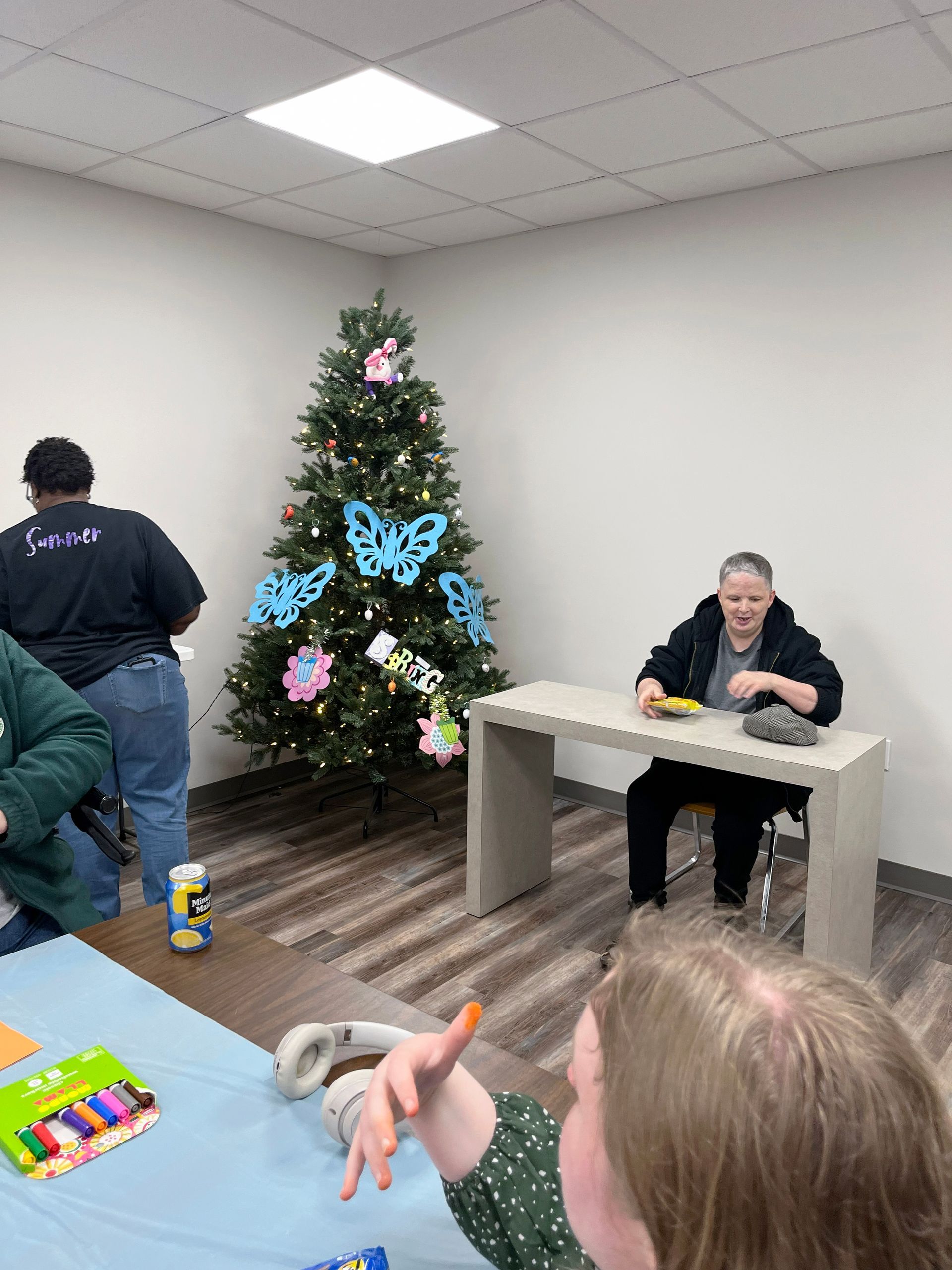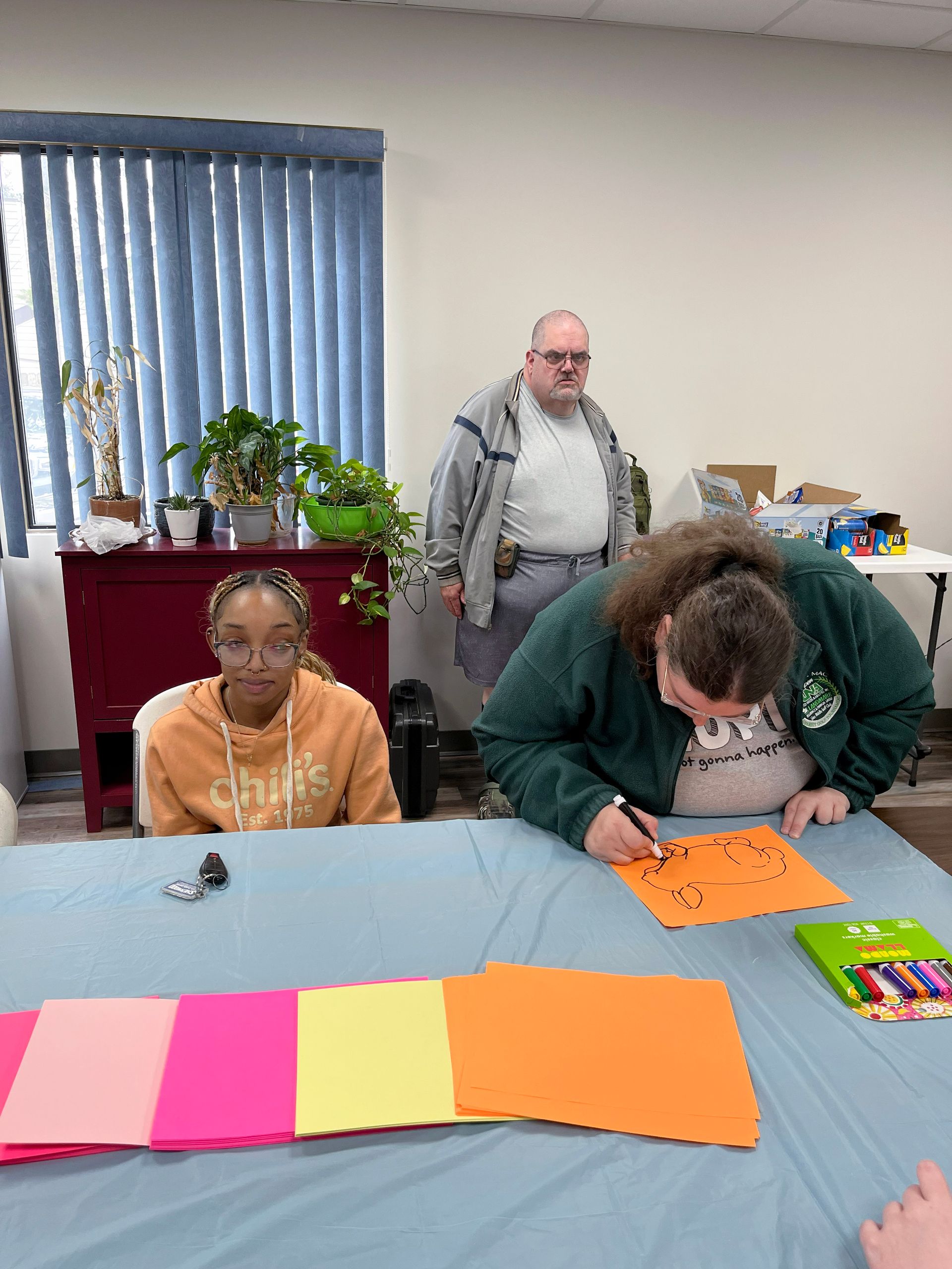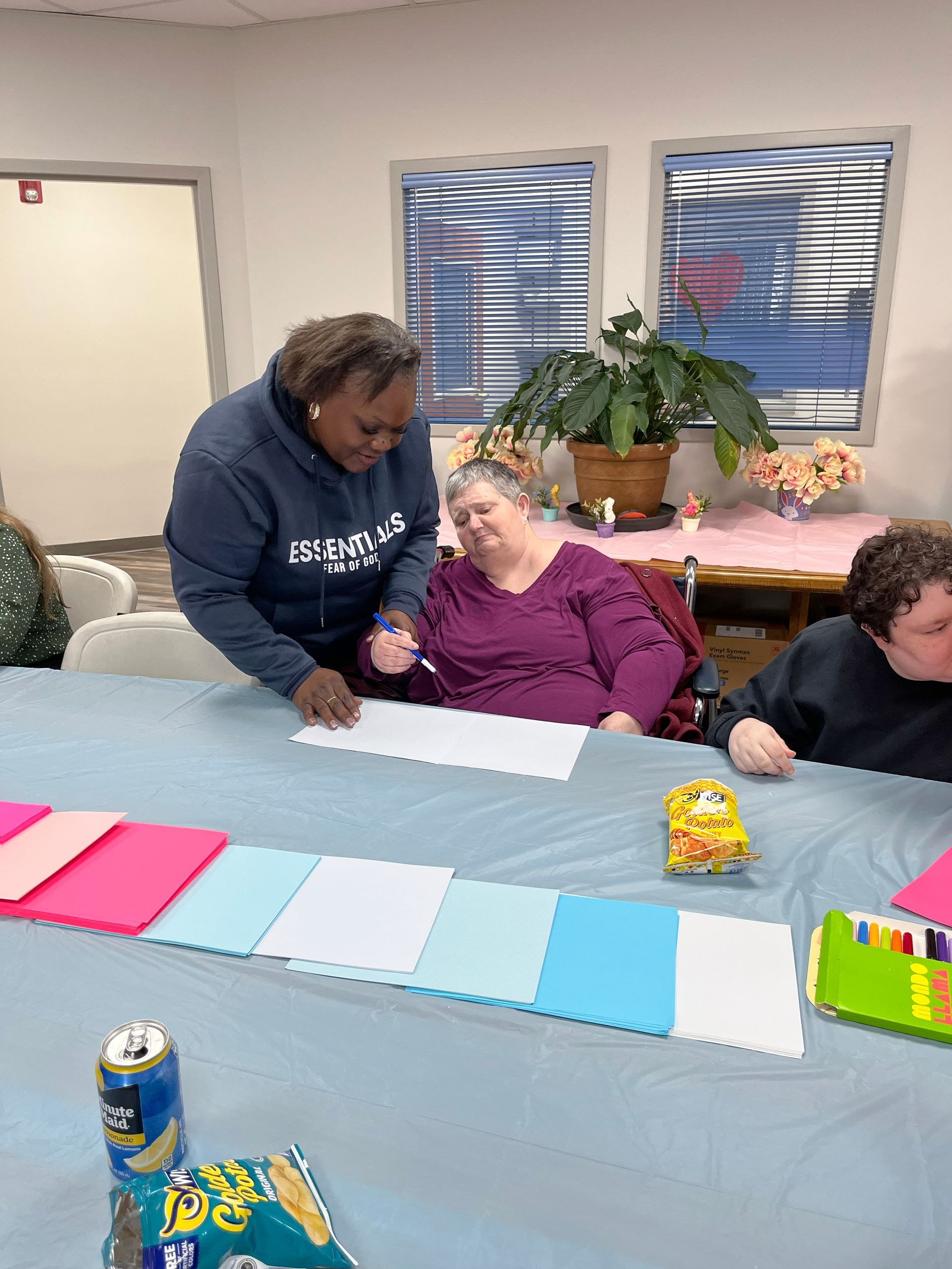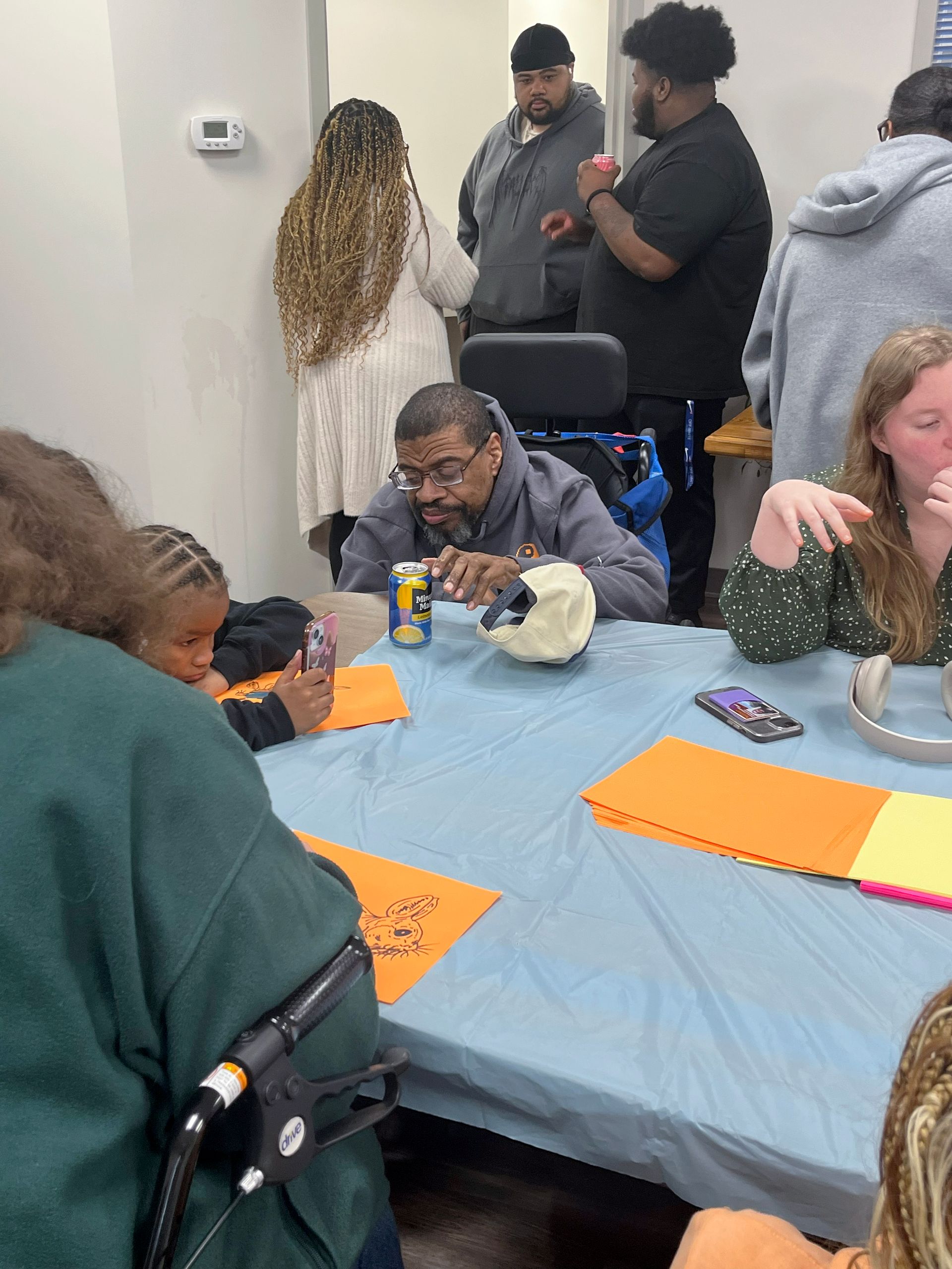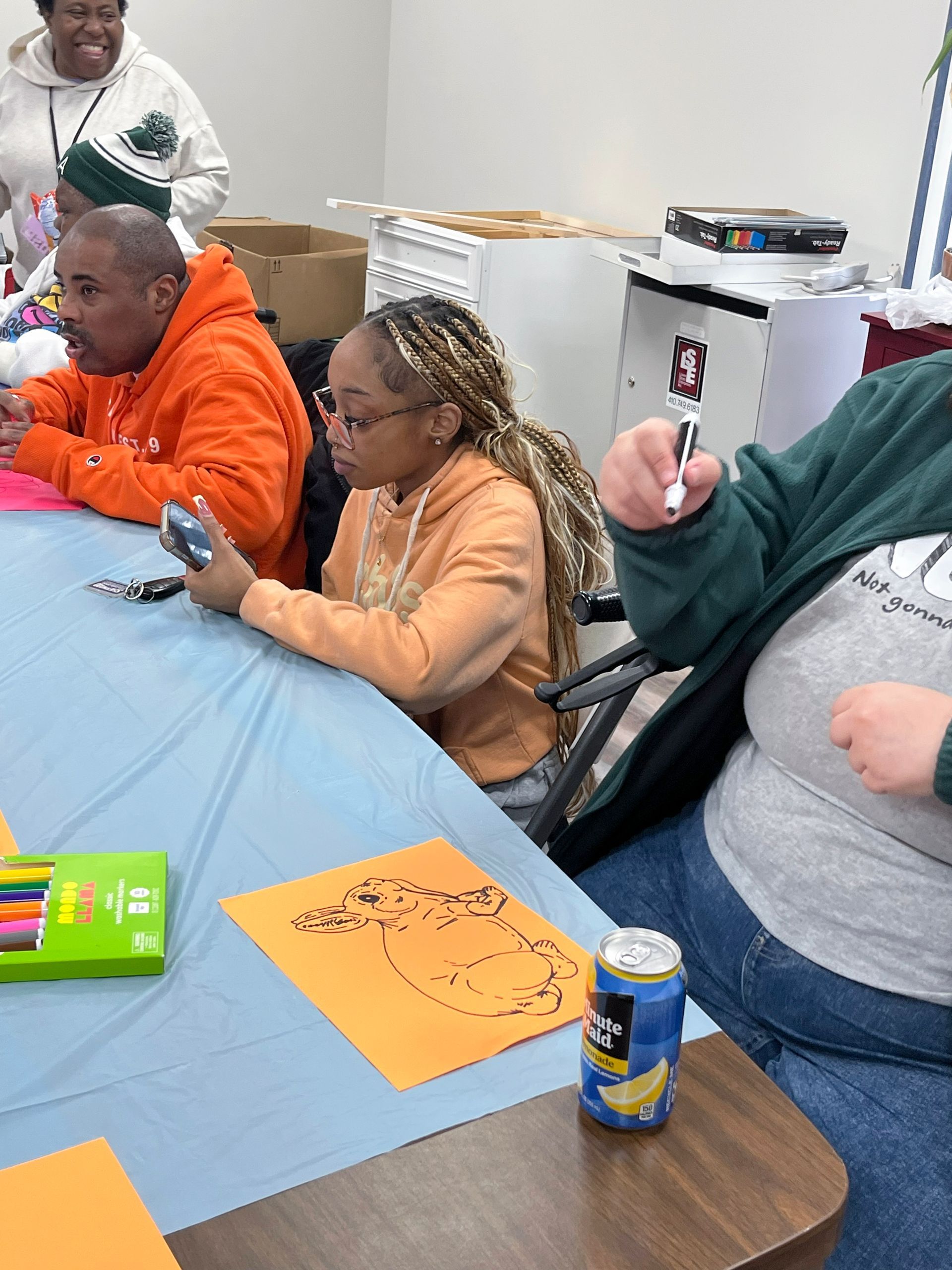 On April 2nd 2026, from 3-5 P.M., clients and staff had a blast creating unique portraits of the Easter Bunny at UNA's main office; when who should hop on by? Why, the Easter Bunny, of course!